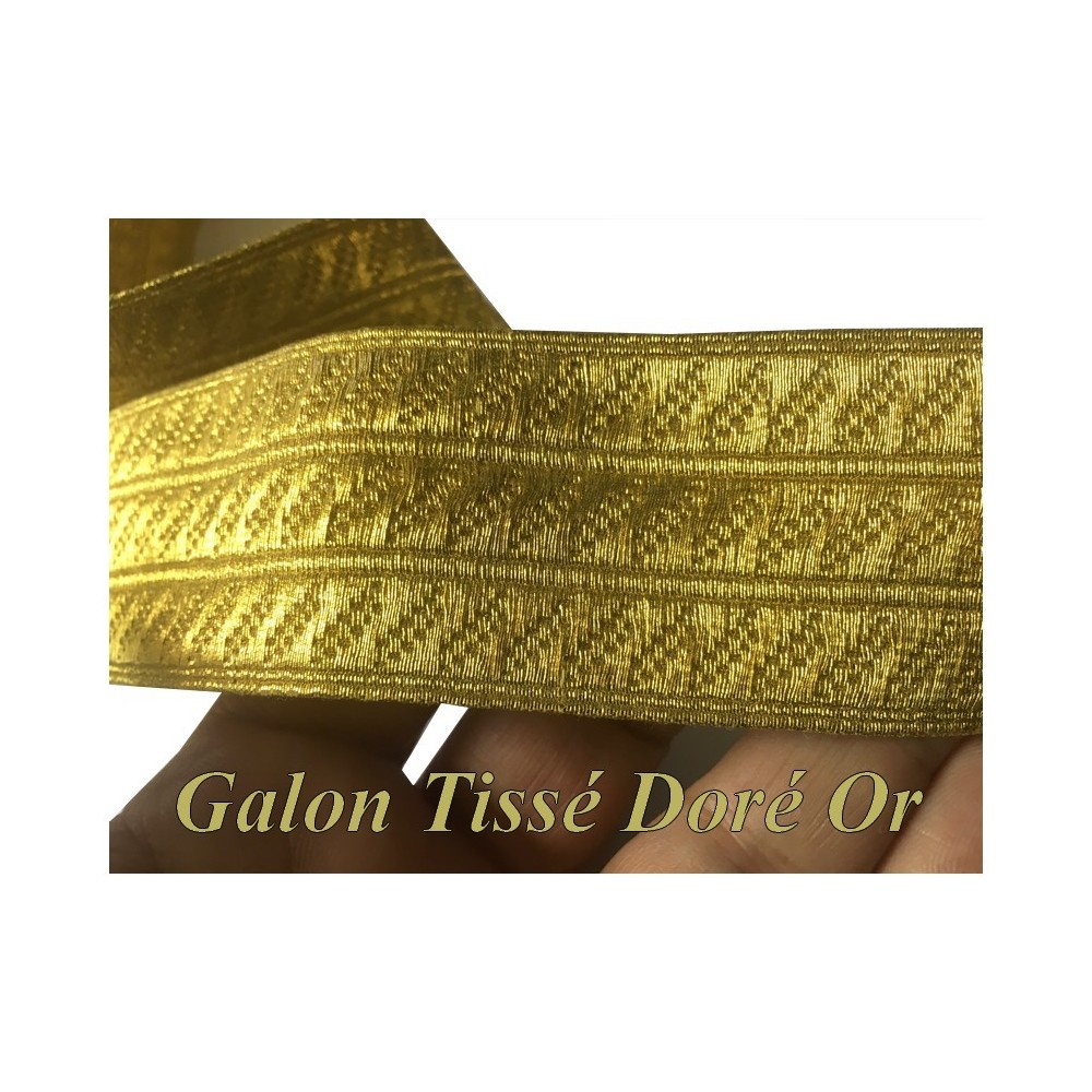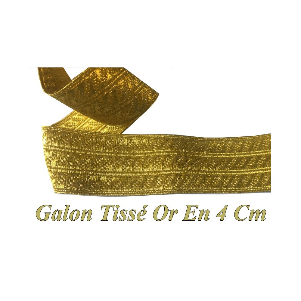 Galon Ruban tissé métallisé au mètre lurex or 4 cm, pour décoration de boite de cadeaux, customisations de veste, jupe, pantalon, de sacs, chapeaux, tee-shirt, foulard ainsi que les loisirs créatifs Ceinture.