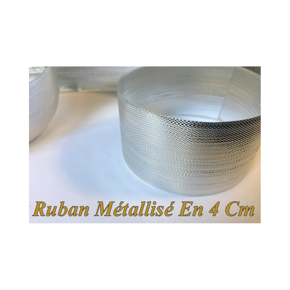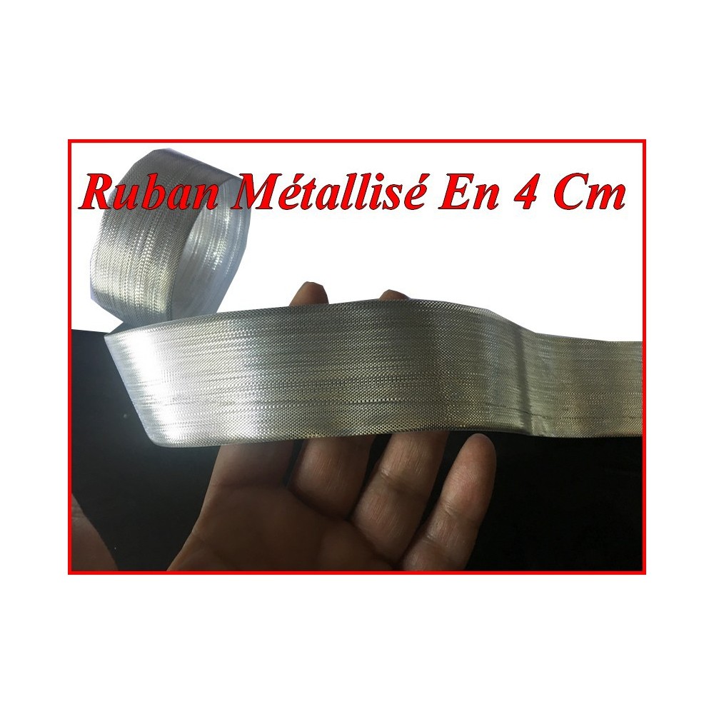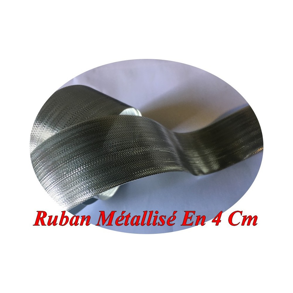 Ruban en bande métallisé au mètre lurex argent 4 cm, pour décoration de boite de cadeaux, customisations de veste, jupe, pantalon, de sacs, chapeaux, tee-shirt, foulard ainsi que les loisirs créatifs Ceinture.