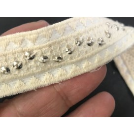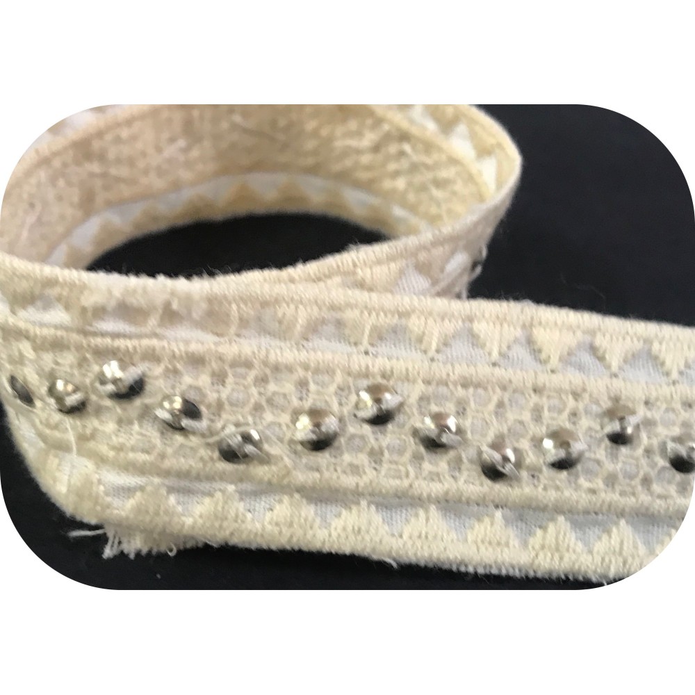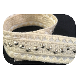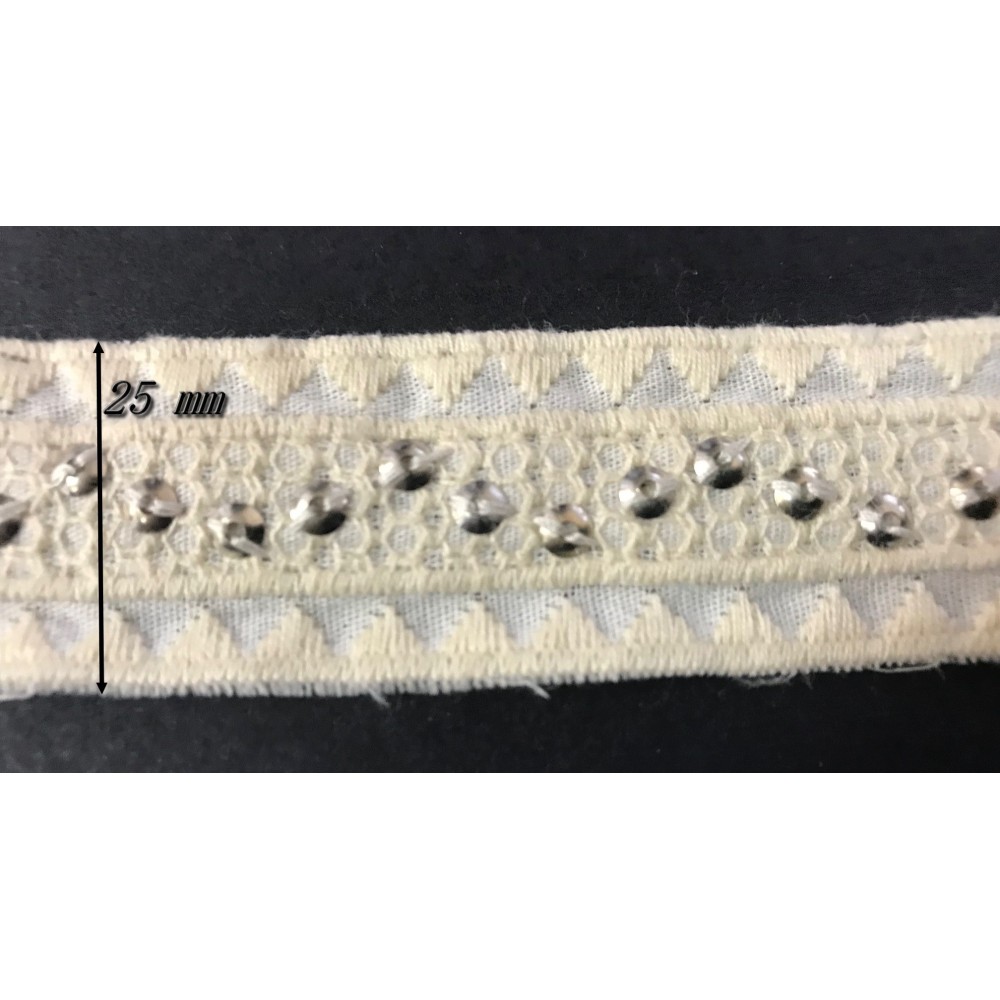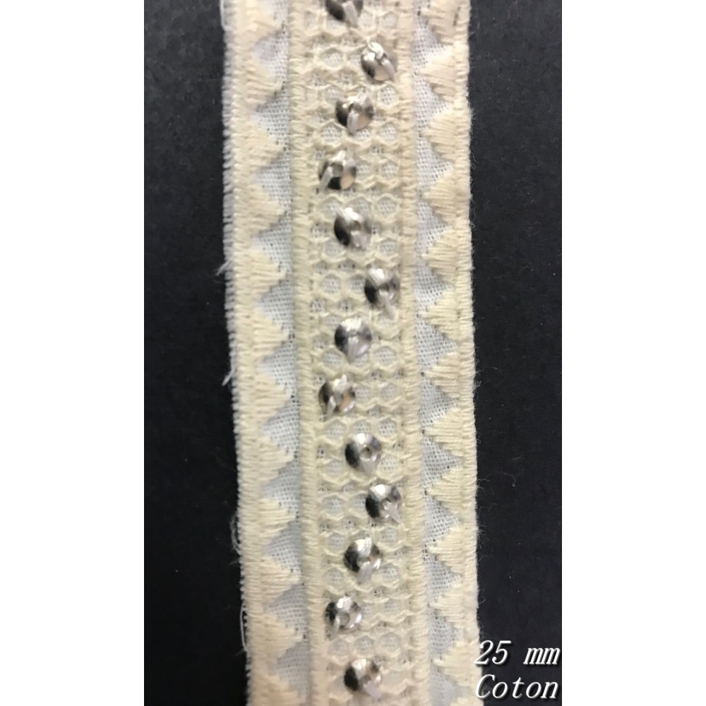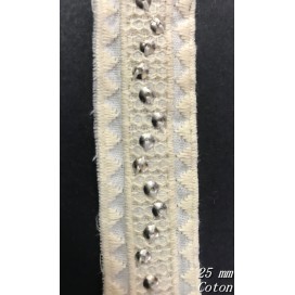 Découvrez notre magnifique ruban en coton écru clouté, d'une largeur de 25 mm, délicatement brodé pour ajouter une touche d'élégance à vos créations. Ce ruban en coton de haute qualité offre à la fois douceur et résistance, idéal pour des projets de couture et de décoration.