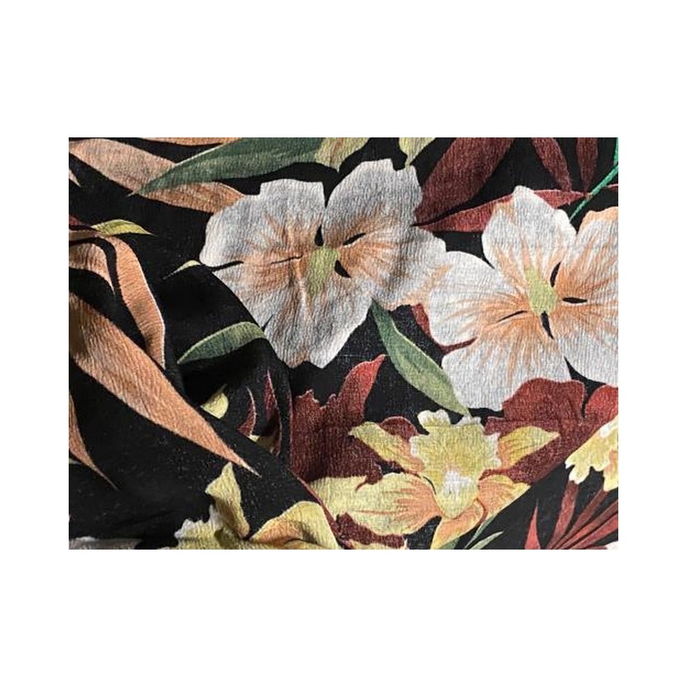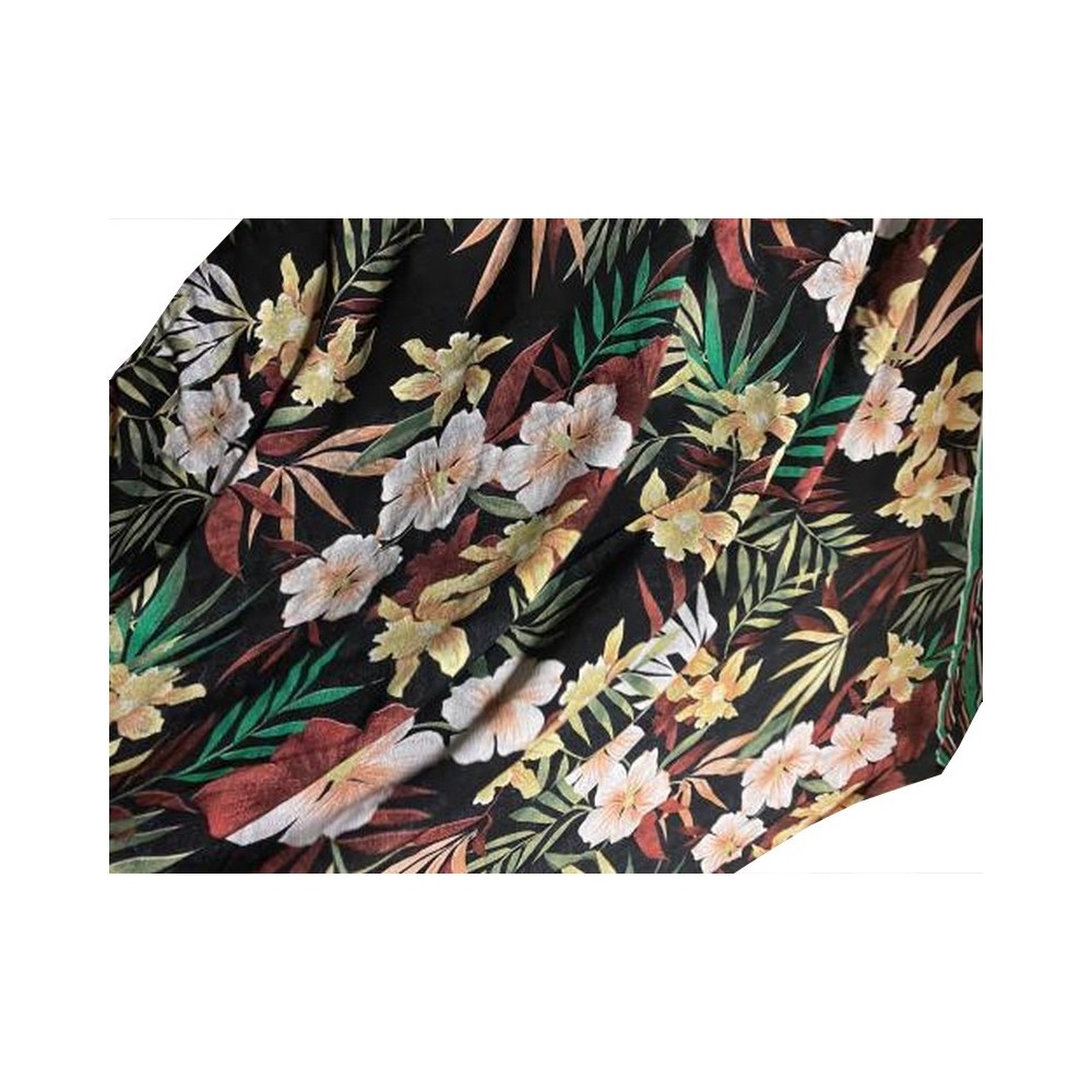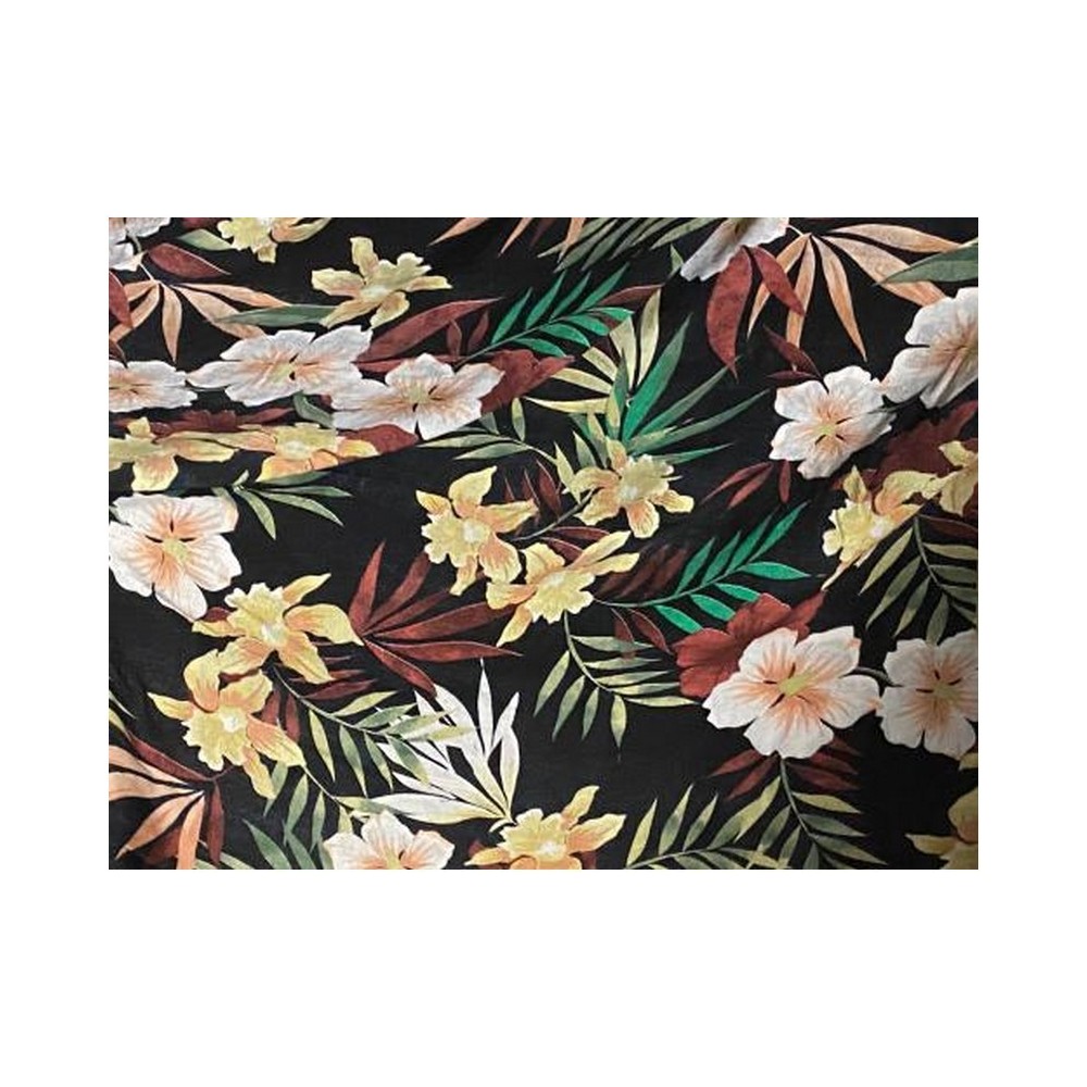 Tissu crêpe Georgette imprimé au mètre pas cher en motifs fleurs de couleur bordeaux, jaune , écru et vert