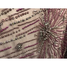 Notre tissu haute couture est un choix idéal pour les femmes qui apprécient la beauté artisanale et les créations uniques. Les pierres brodées font de chaque coupon une pièce unique. Cette robe vous offrira un style intemporel et élégant, tout en vous assurant que vous êtes la plus belle de la soirée. Alors, n'hésitez plus et achetez notre superbe tissu haute couture en perles et strass cousus à la main sur un support en tulle résille noir, à utiliser pour créer la robe parfaite pour votre prochaine occasion spéciale !"