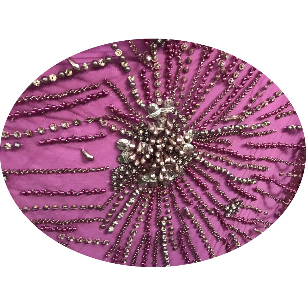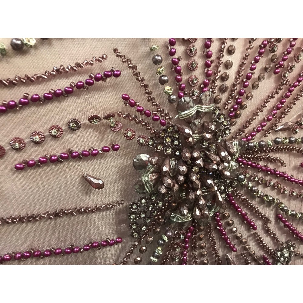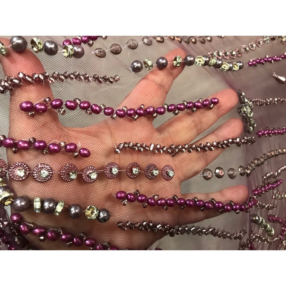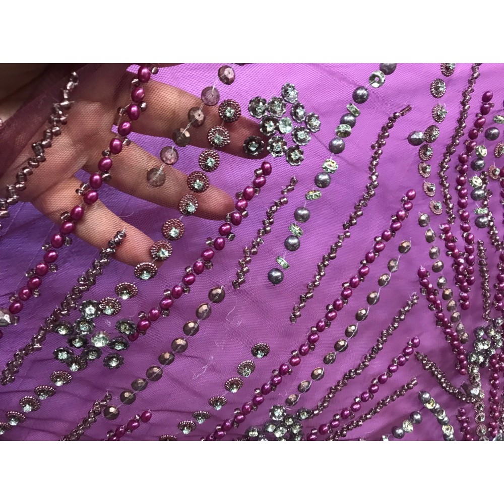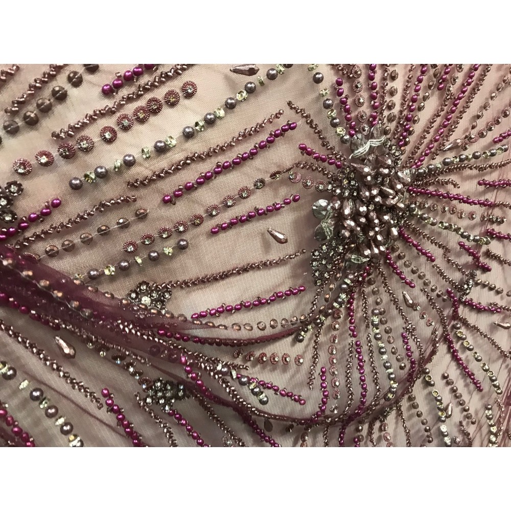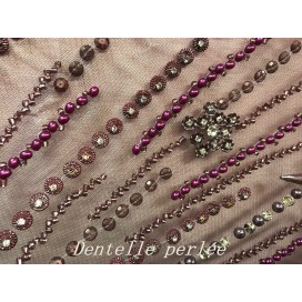 Chaque coupon de 3 mètres 50 est fabriqué avec soin pour offrir une qualité inégalée. Le tissu est coupé à une largeur de 1 mètre 45, parfait pour une robe de cérémonie, un bustier, un caftan ou une robe de soirée. Les fines mailles du tulle, combinées aux perles et aux strass, créent une impression de légèreté et d'élégance.