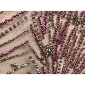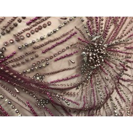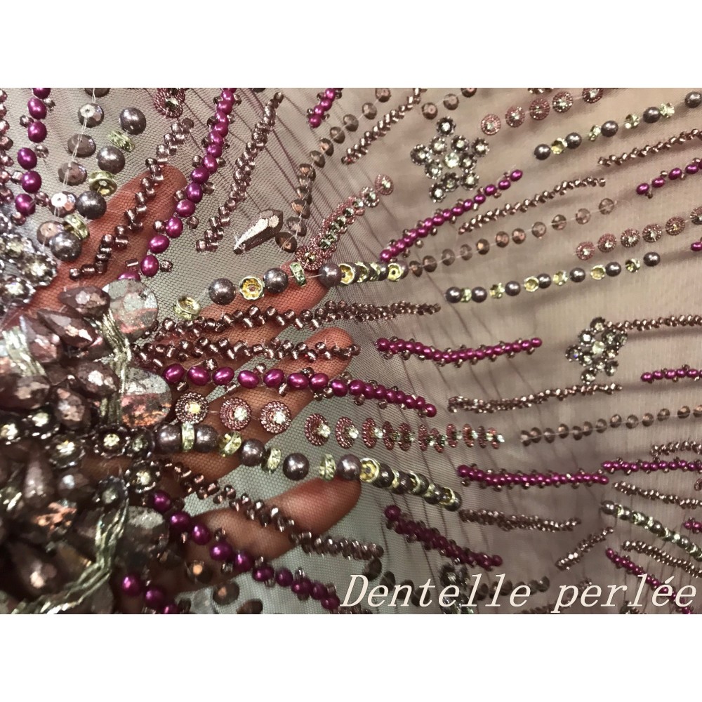 "Imaginez une robe de soirée incroyablement belle, avec un tissu orné de magnifiques perles et strass cousus à la main. Notre tissu haute couture en perles et strass est un choix parfait pour votre prochaine occasion spéciale. Le tulle résille noir est brodé avec des pierres originales pour créer un motif unique, qui éblouit tout en restant raffiné.