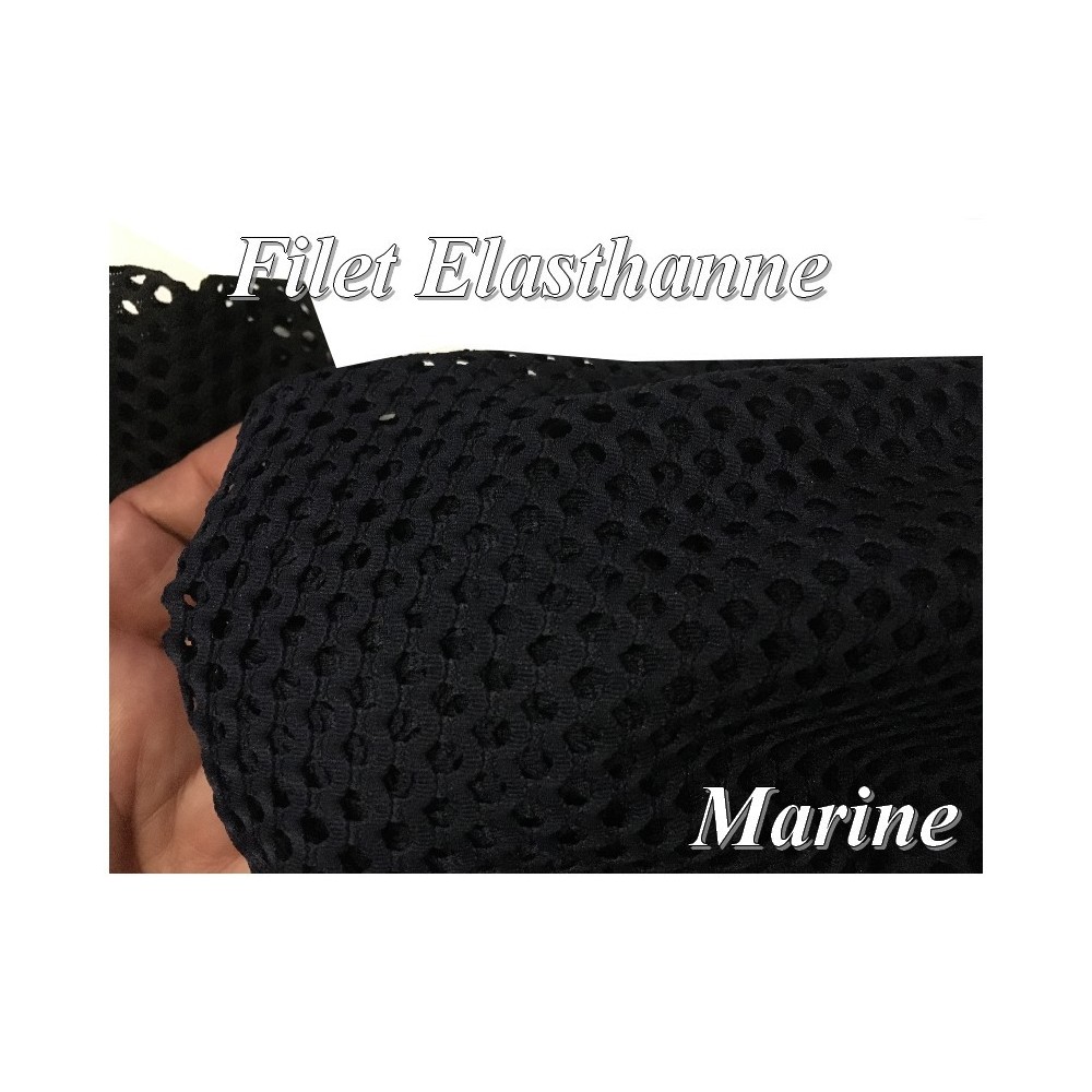 Tissu en Filet Lycra bleu marine au mètre en grande largeur.