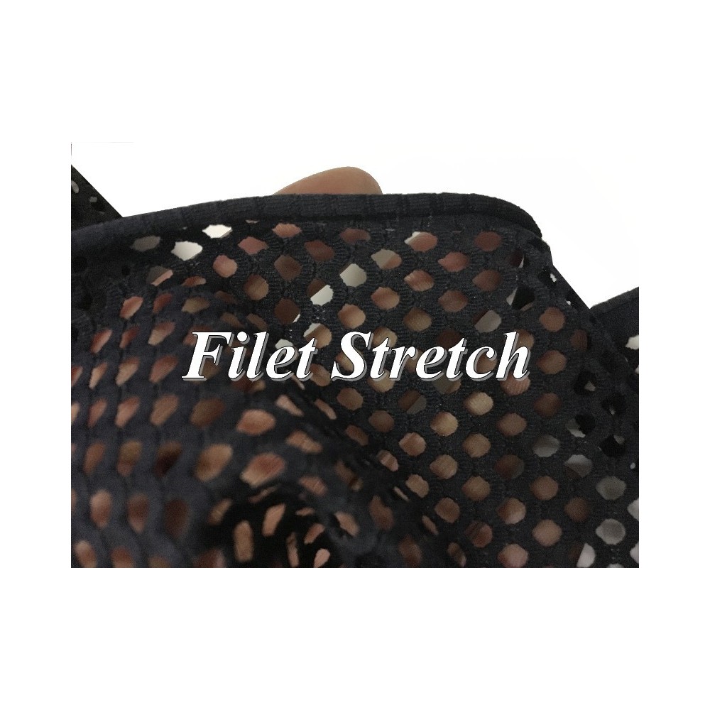 Tissu en Filet Lycra Noir en 1 m 70 de large, légèrement velouré avec un touché doux.