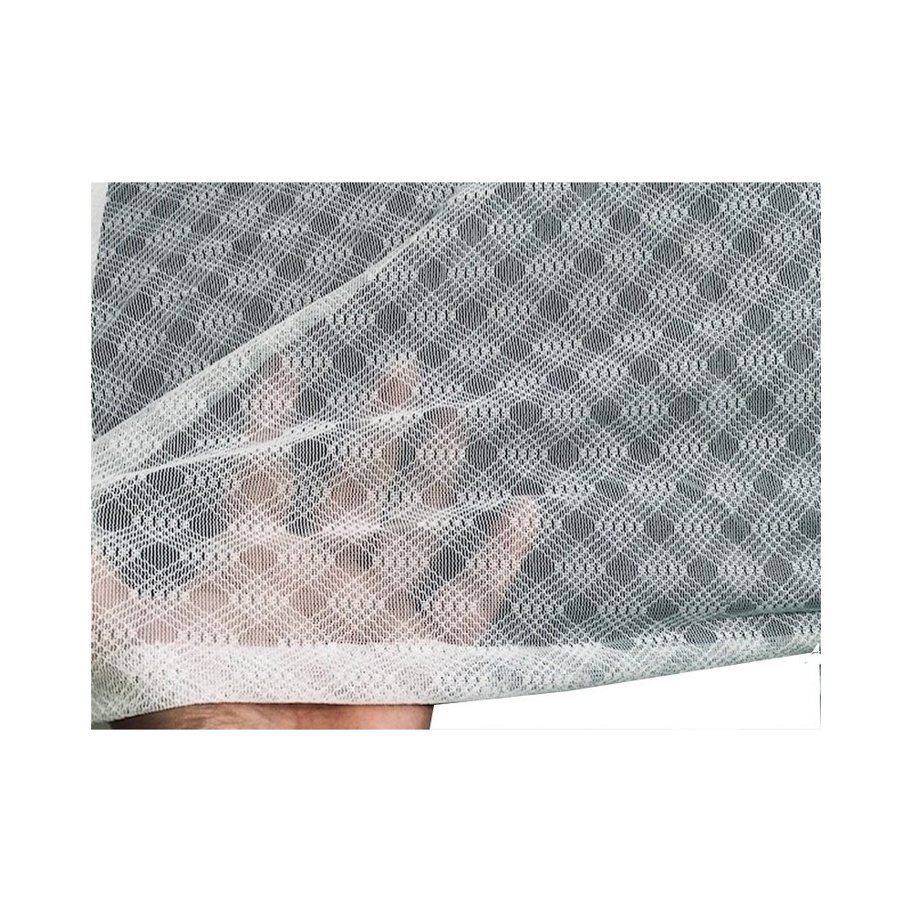 Tissu résille tissu en motif losange lycra blanc, extensible des 2 cotés