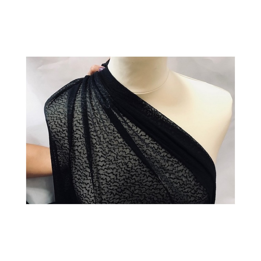 Fourniture résille lycra imprimé original en grande largeur couleur noir.