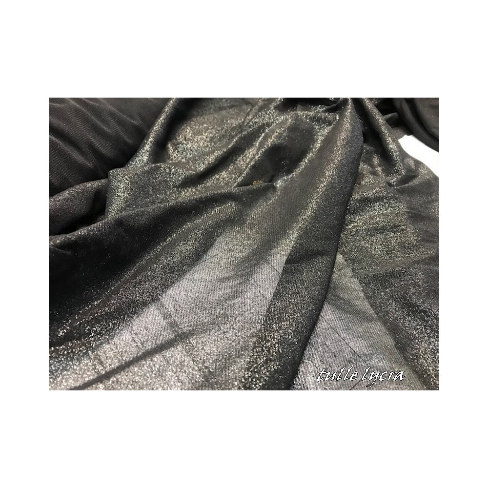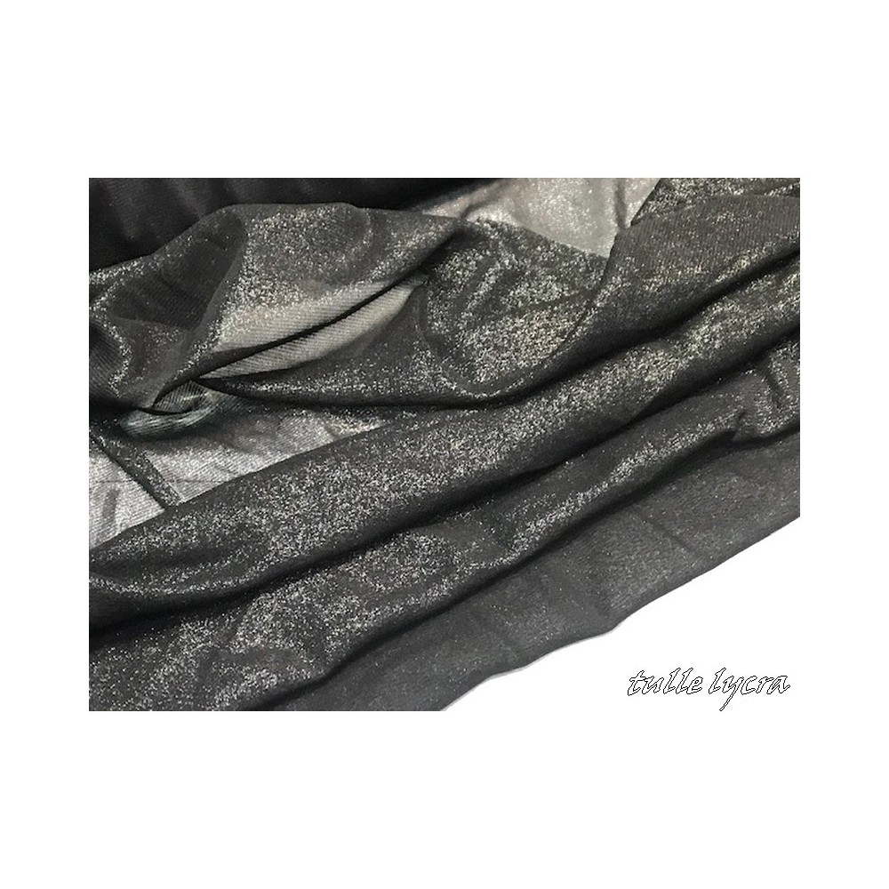 Tissu Tulle au Mètre Lycra Pas Cher en Couleur noir aspect argenté lurex pour danse et justaucorps.