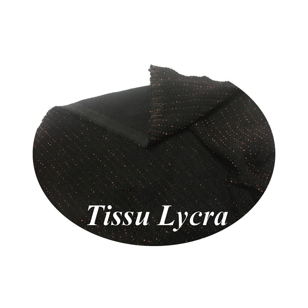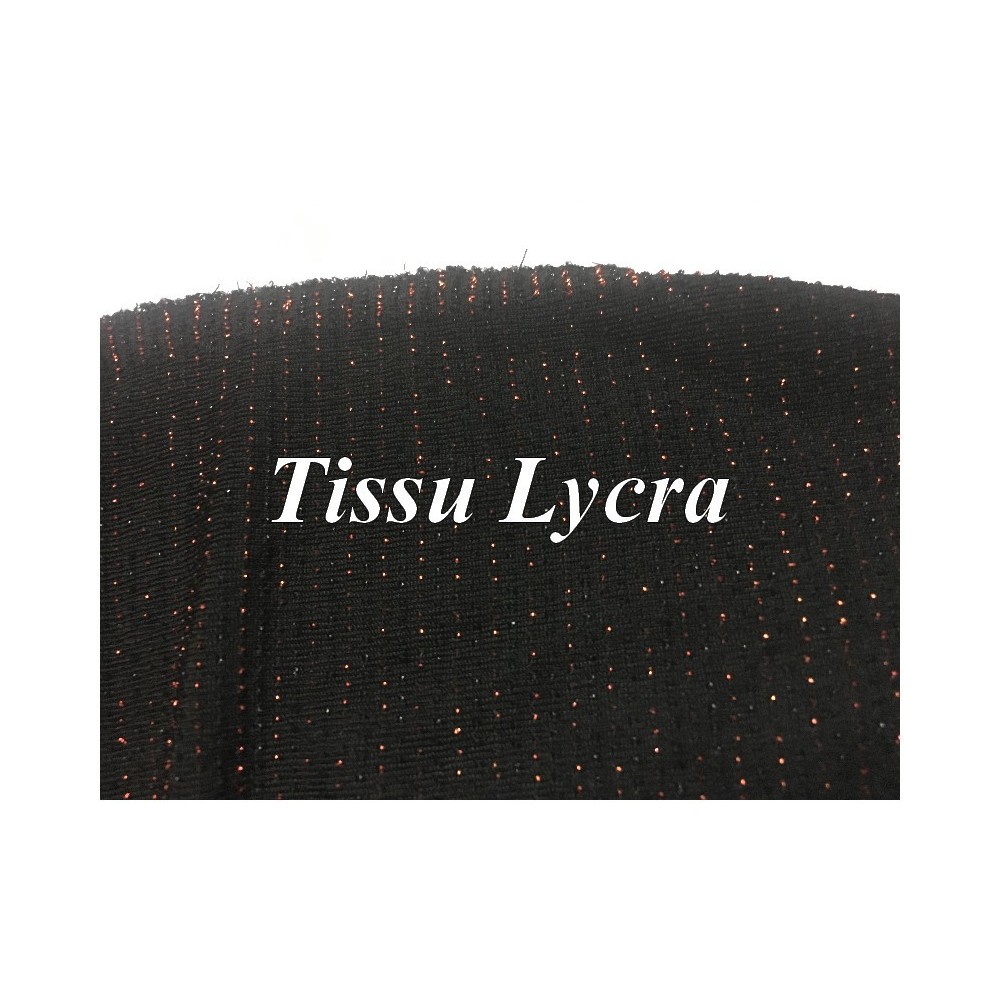 Lycra tissu élasthanne à fine rayure cuivré sur fond noir, pour la fabrication de lingerie féminine, robes stretch, body, caleçons, combinaison lycra, tee-shirt.