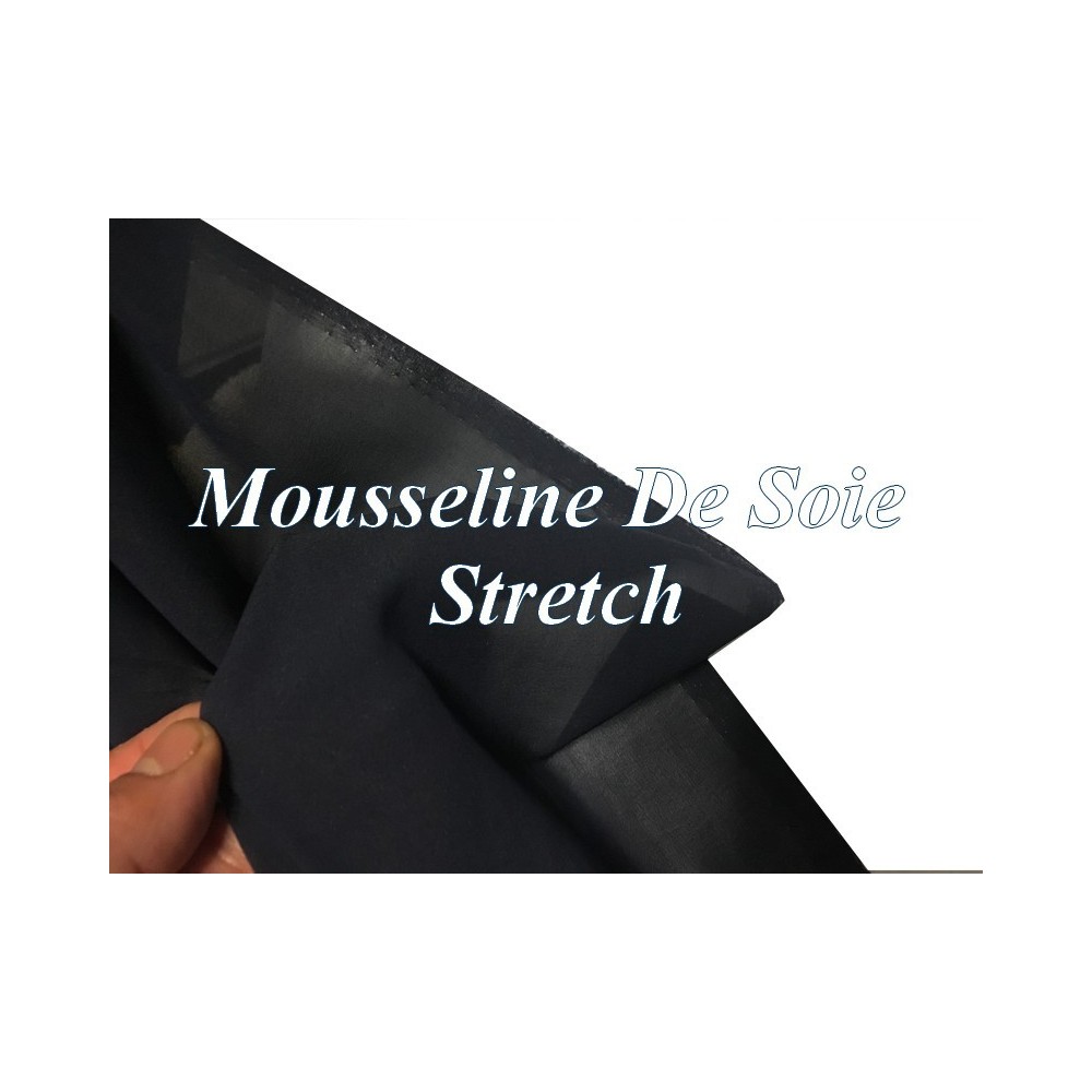 Tissu en mousseline de soie bleu marine lycra au mètre.