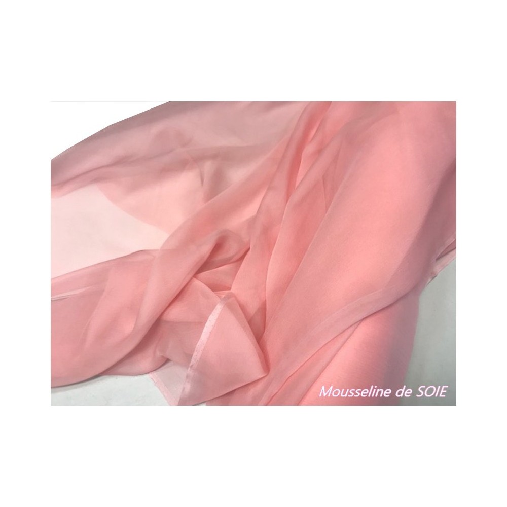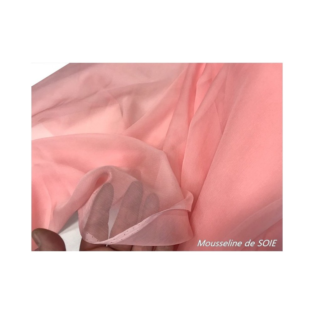 Mousseline de soie au mètre rose haute couture.