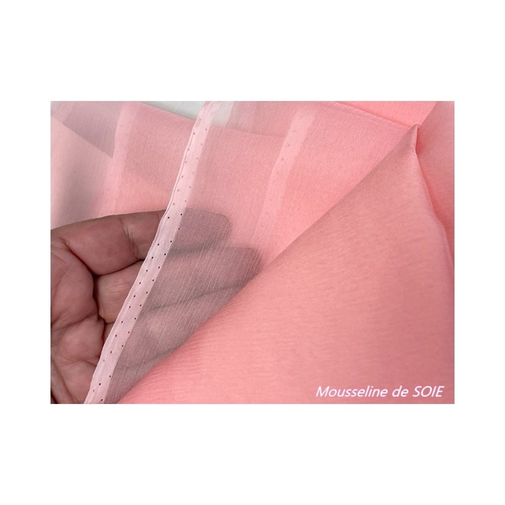 Mousseline de soie au mètre Rose Haute couture.