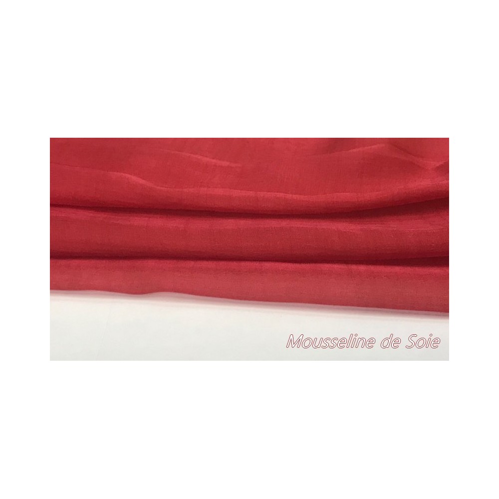 Tissu pongé de soie au mètre coloris rouge , soie de bonne qualité de fabrication française,souple, soyeuse,