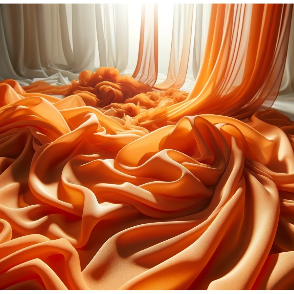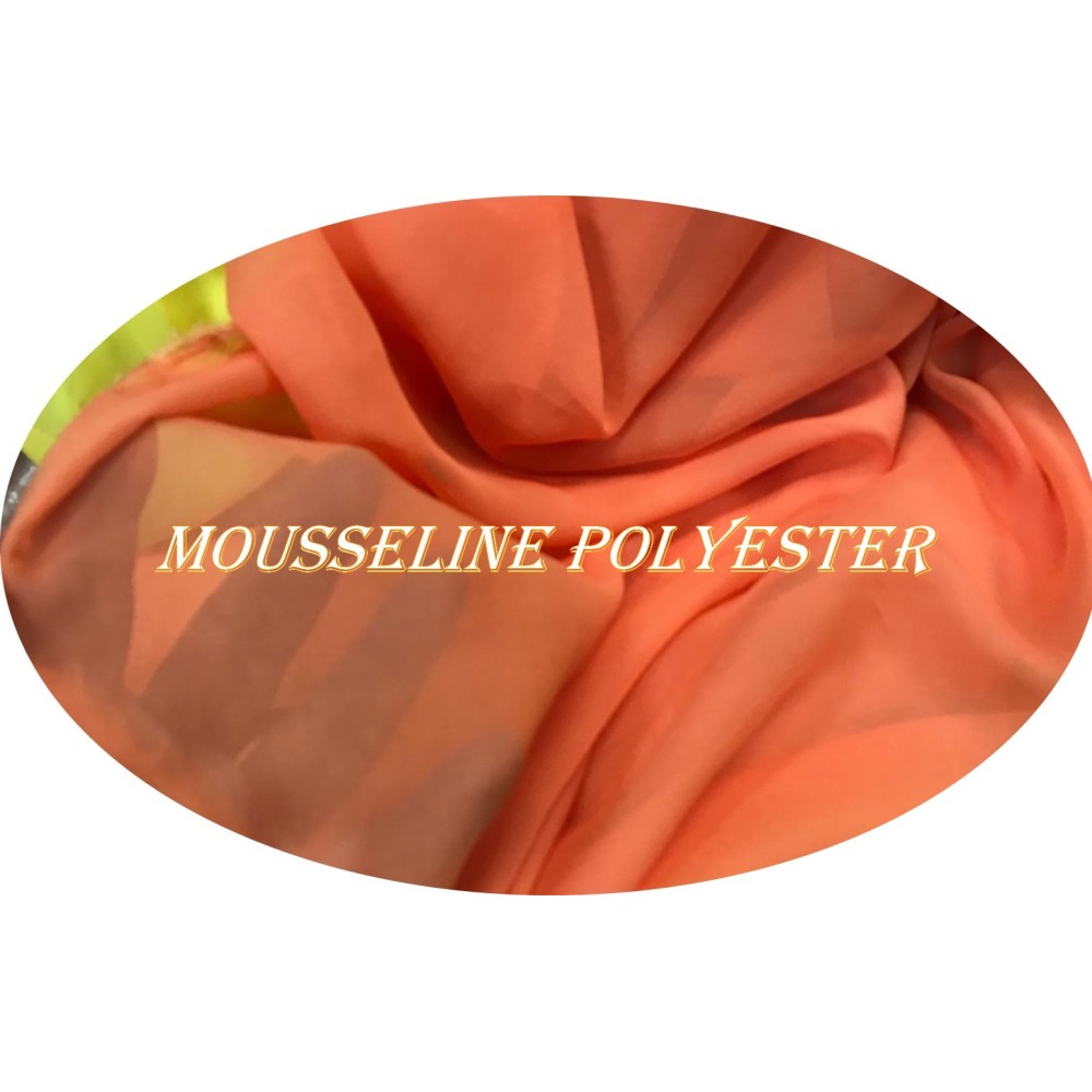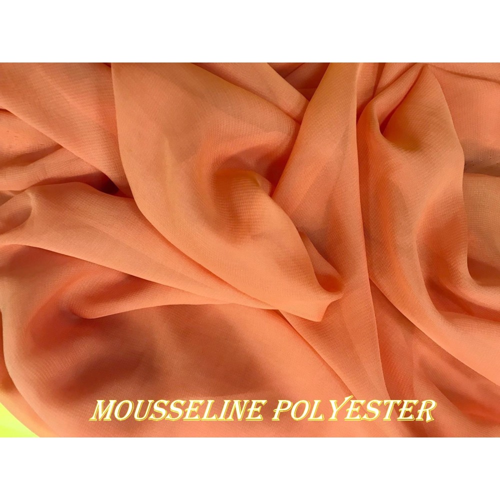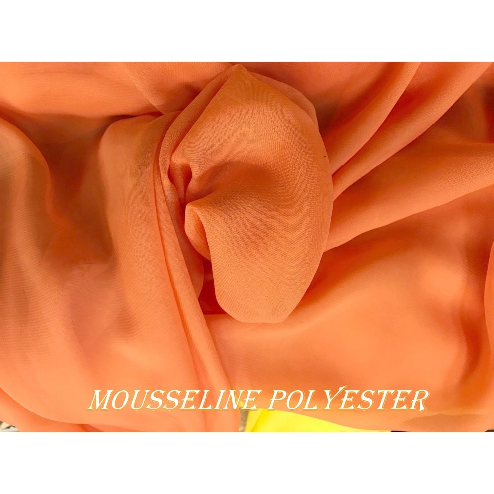 "Nous proposons de la mousseline en polyester au mètre à un prix abordable. Ce tissu est disponible en couleur orange.