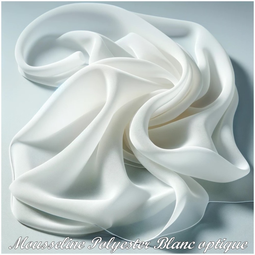 La mousseline en polyester est un tissu léger et transparent, souvent utilisé dans la confection de vêtements, de décoration intérieure et de projets artisanaux. Voici quelques utilisations courantes de la mousseline en polyester :