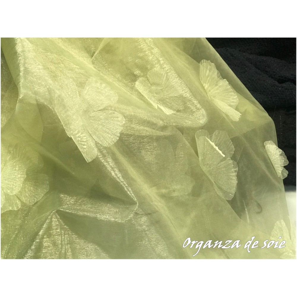 Tissu en organza de soie de haute qualité, au mètre, 100% soie, pour vos projets de couture, de customisation, de décoration d'intérieur et d'événements. Ce tissu est souple, soyeux et fluide, parfait pour vos projets créatifs.