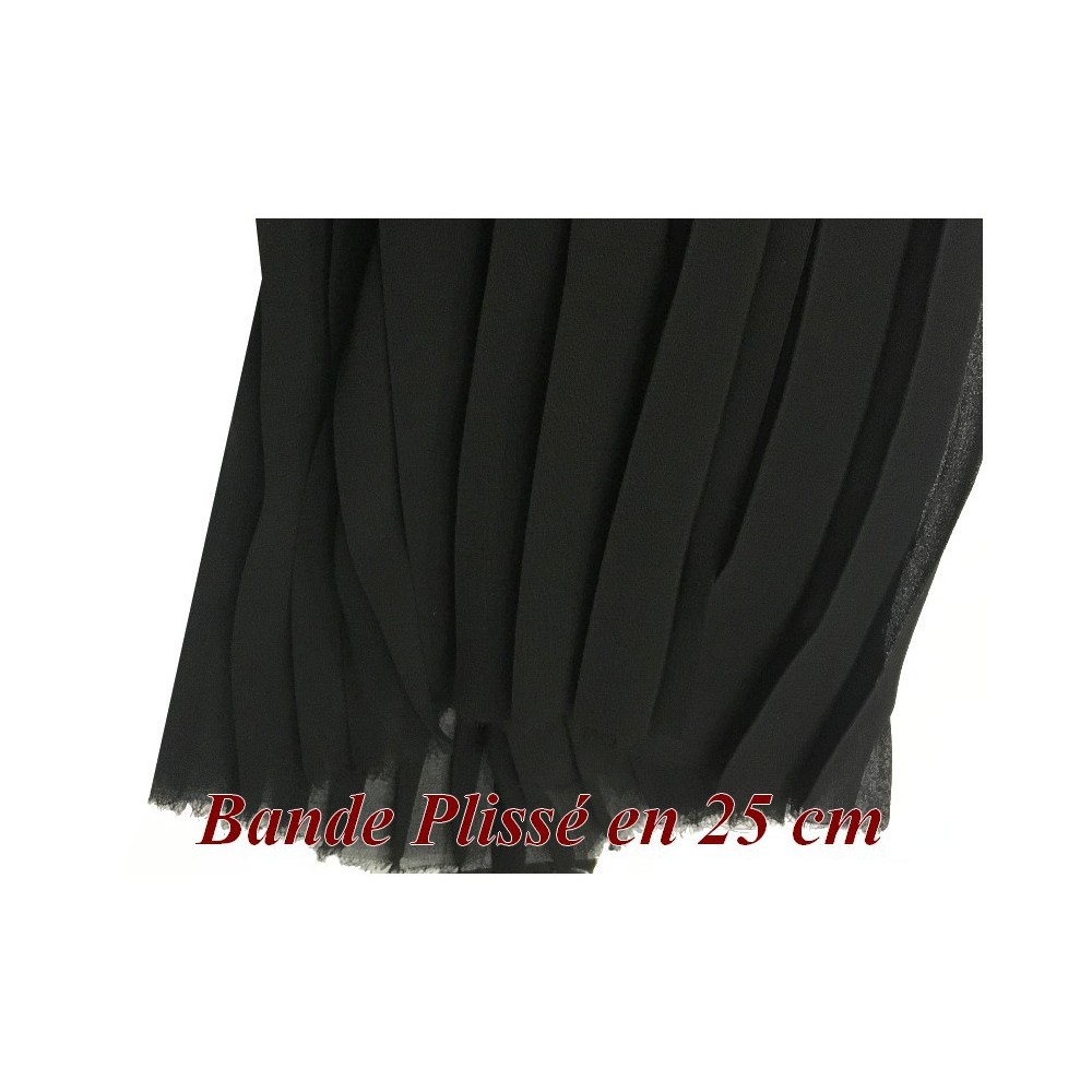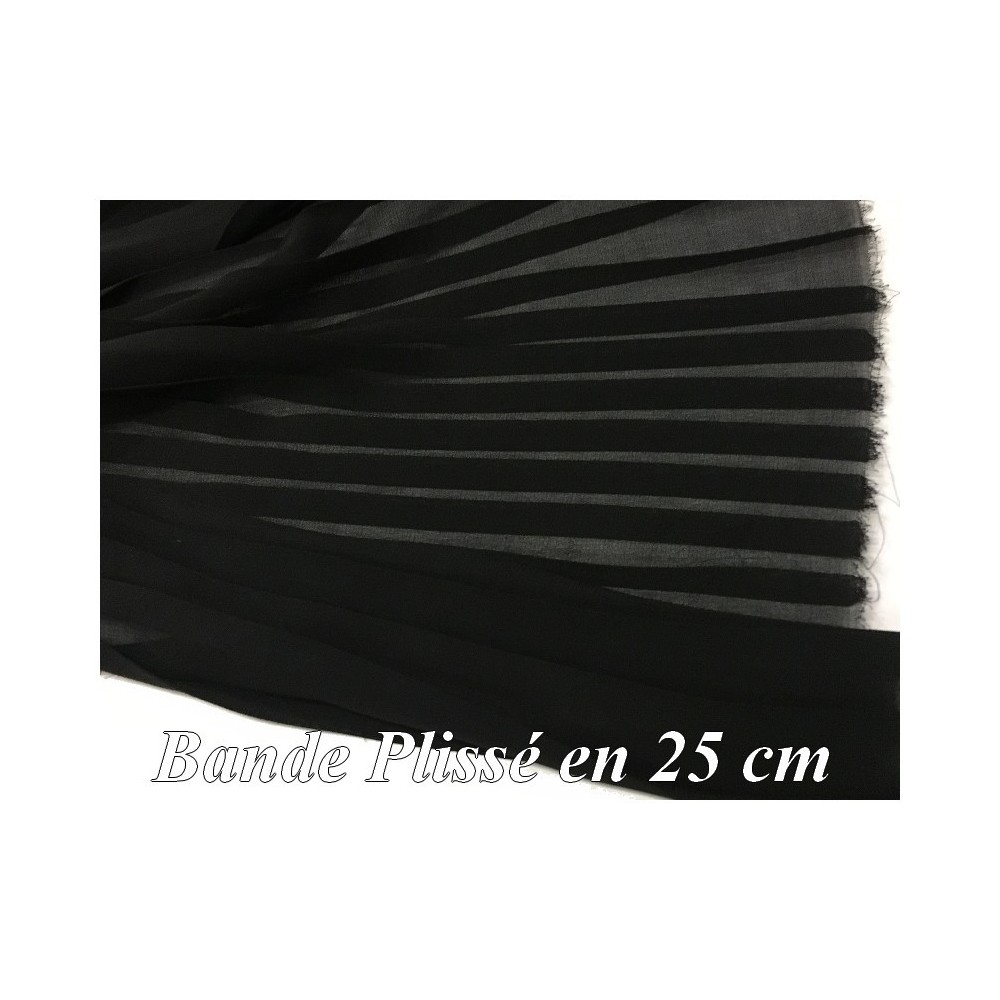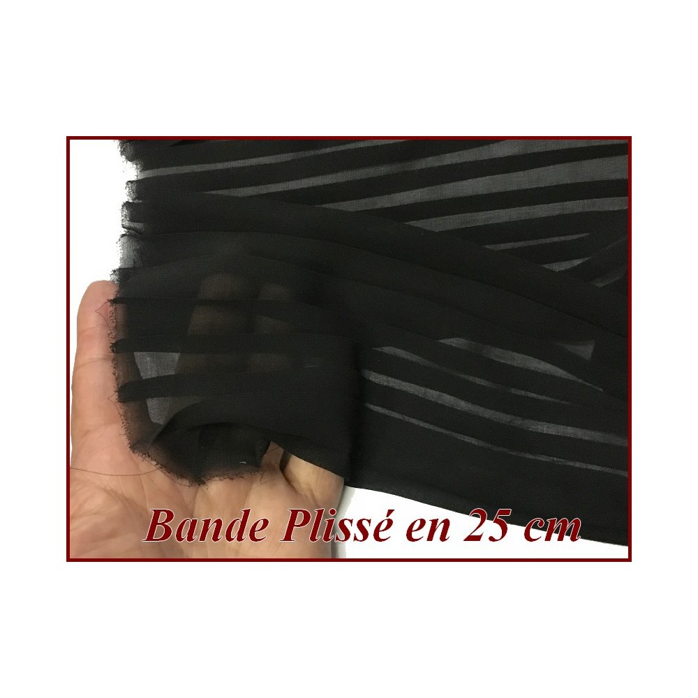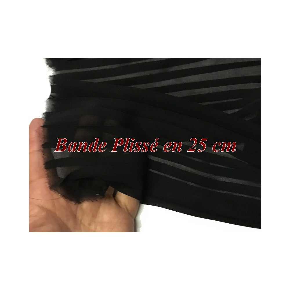 Bande de Tissu mousseline plissé au mètre pas cher en noir.