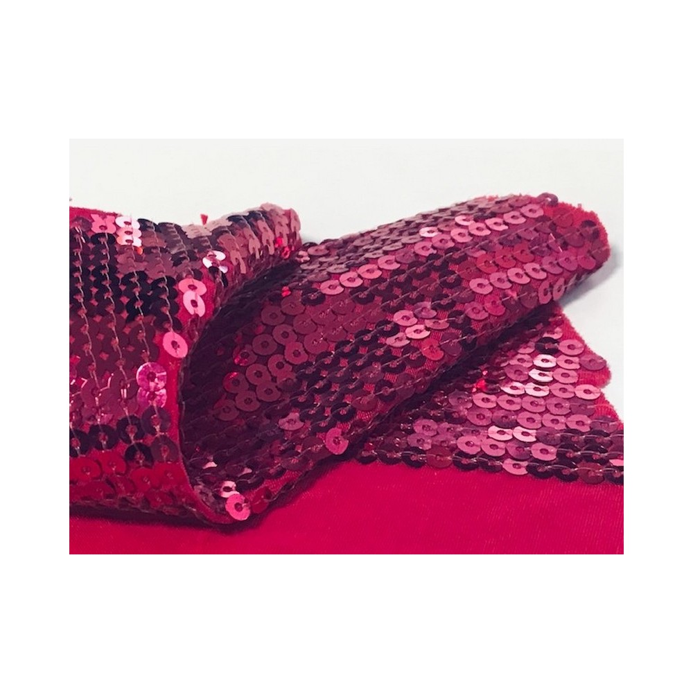 Tissu sequin en lycra au mètre pas cher extensible dans le sens de la largeur et de la hauteur