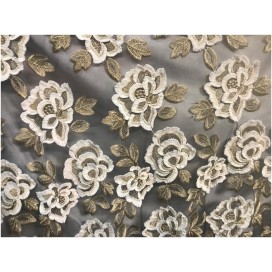 Dentelle en broderie au Mètre en couleur ivoire sur tulle Résille, en