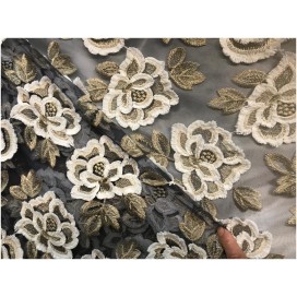 Dentelle en broderie au Mètre en couleur noir sur tulle Résille, en