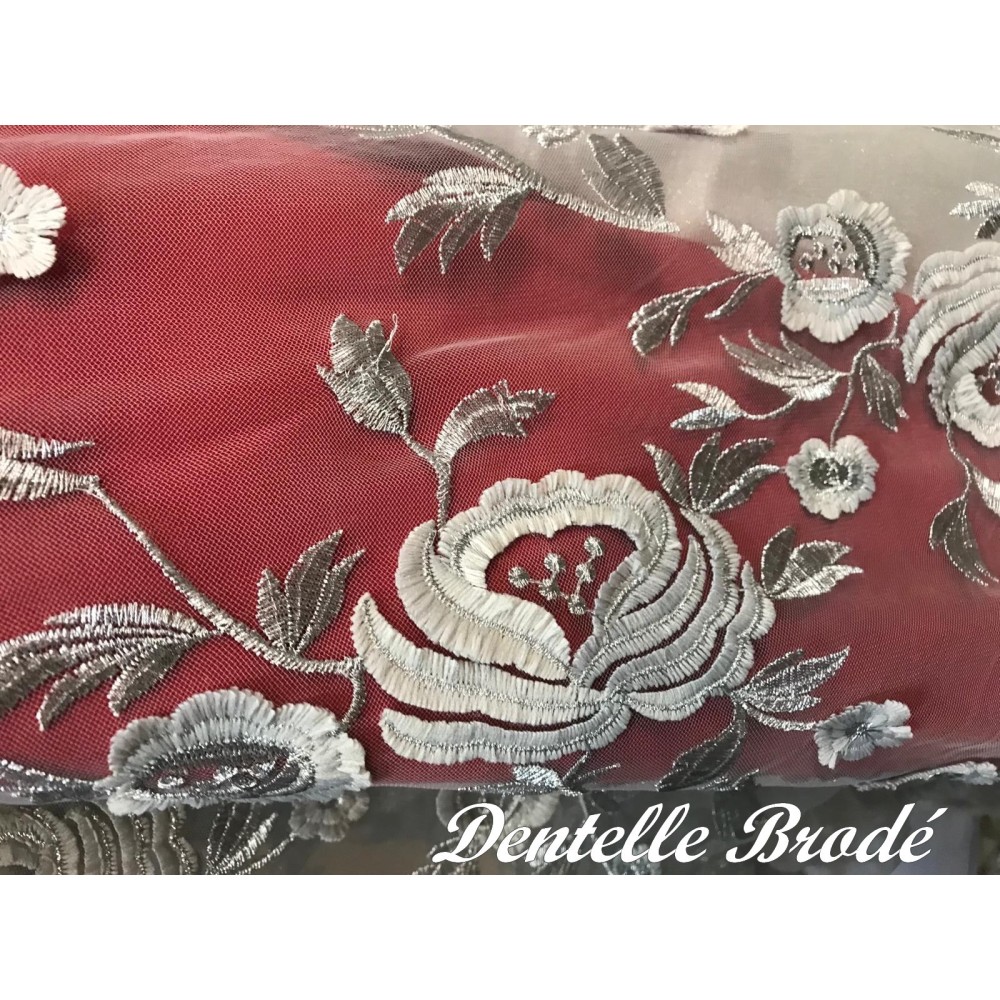 Vous pouvez l'acquérir au mètre, vous offrant ainsi la possibilité de laisser libre cours à votre imagination. Avec cette dentelle tissée à la main et ses motifs floraux exquis argent, chaque création deviendra une pièce maîtresse unique et inoubliable. Alors, laissez-vous inspirer par cette dentelle somptueuse et faites briller votre créativité.