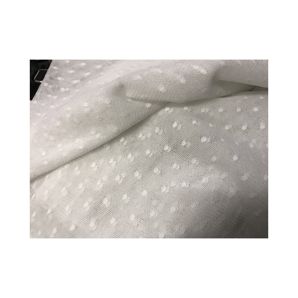 Résille lycra blanc plumetis en grande largeur pour lingerie et confection sous vêtements.