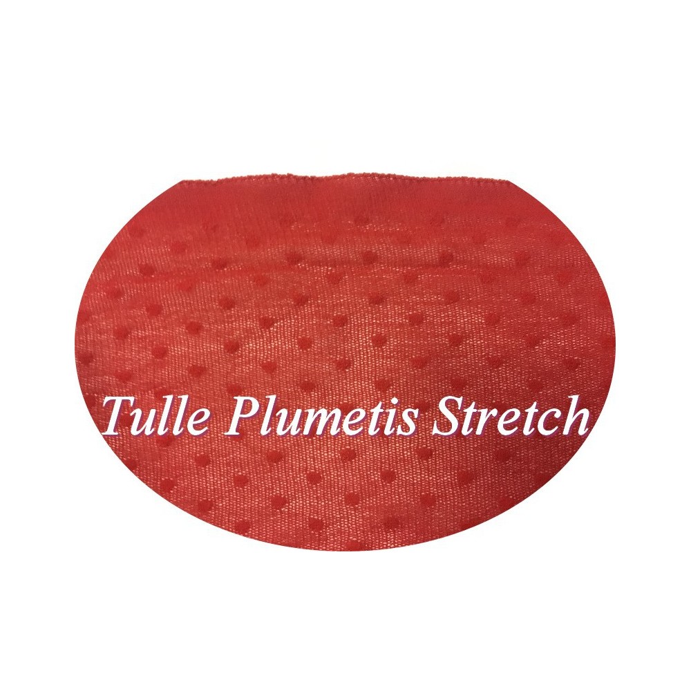 Fourniture tulle plumette au mètre en couleur rouge, souple pour lingerie, justaucorps, jupons, robes de danses.