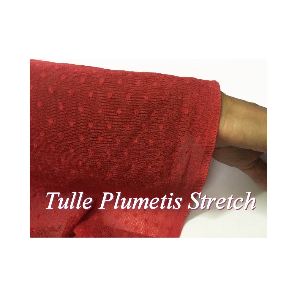tulle plumetis au mètre résille lycra en 1 mètre 50, de couleur rouge extensible d'un coté.