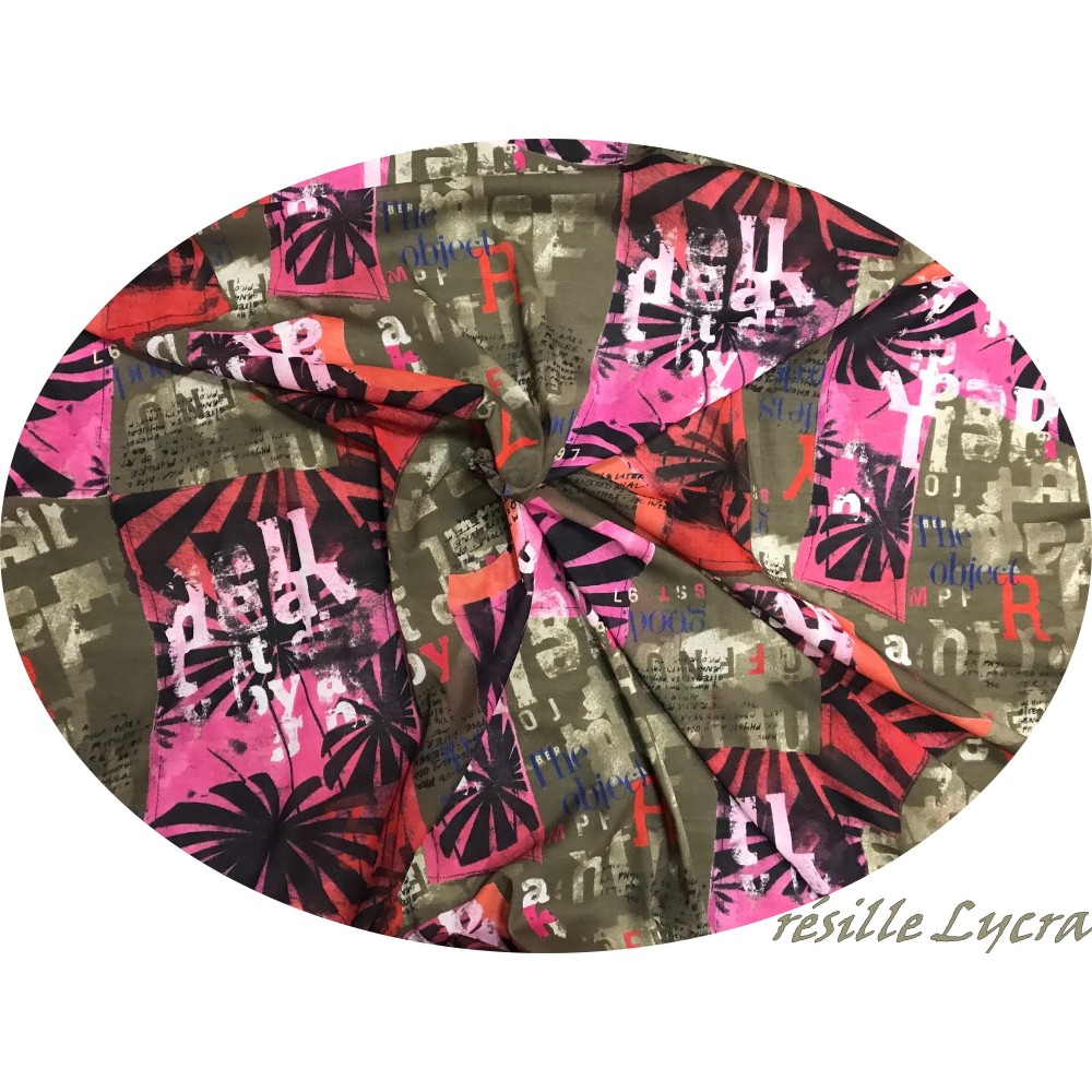 Tissu résille imprimé florale lycra , extensible des 2 cotés