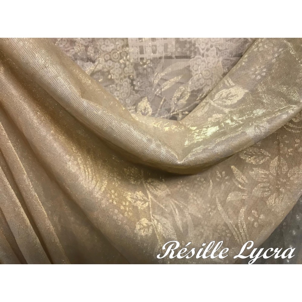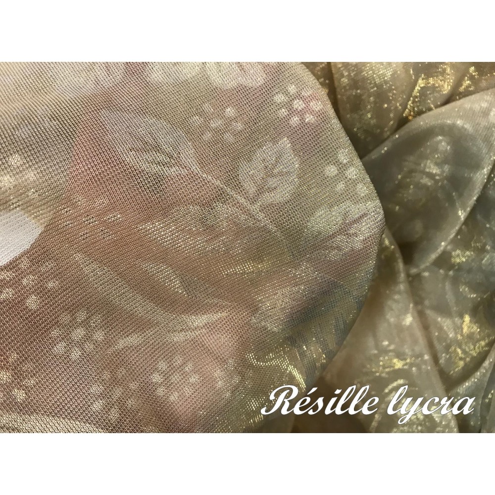 Fourniture résille lycra imprimé en grande largeur.