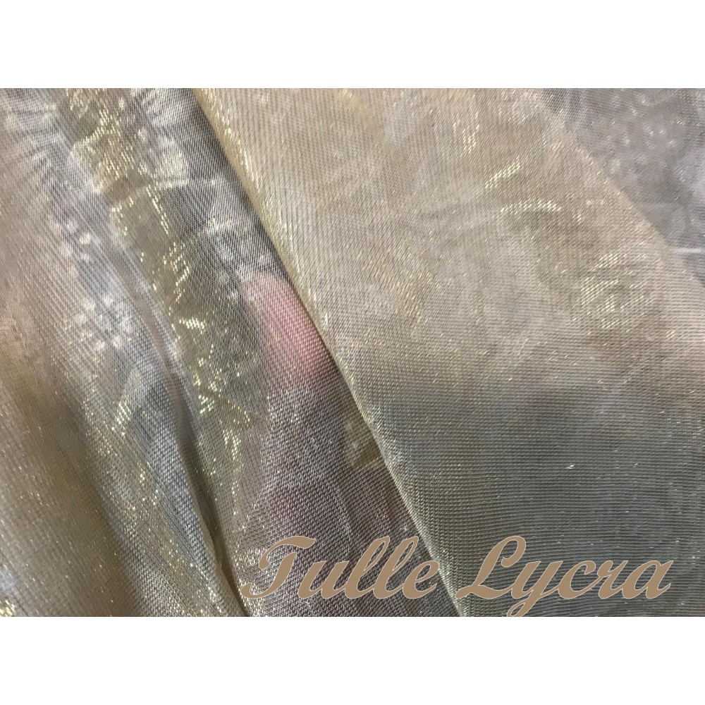 Tissu Tulle au Mètre Lycra Pas Cher en Couleur Gris paillette argenté pour justaucorps.