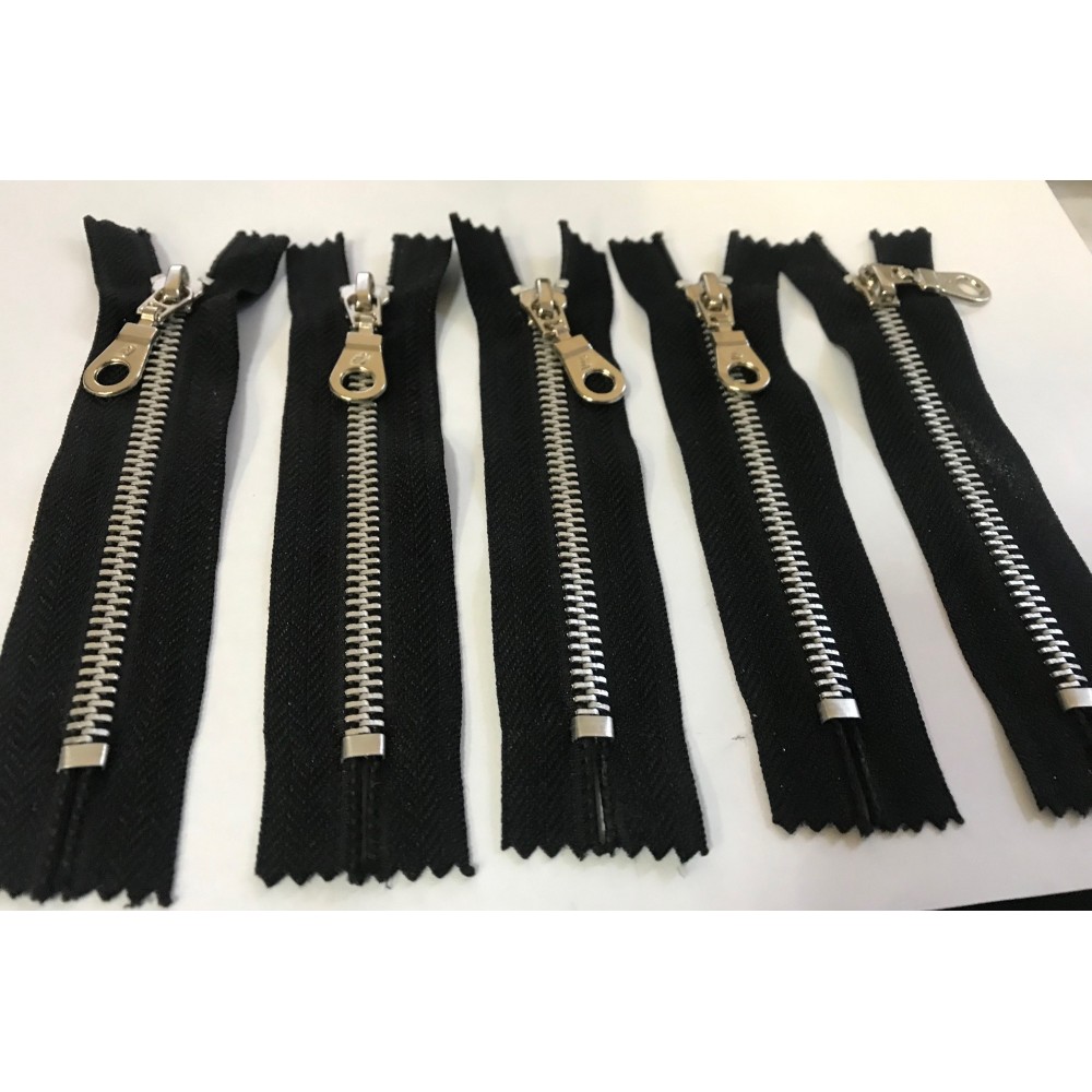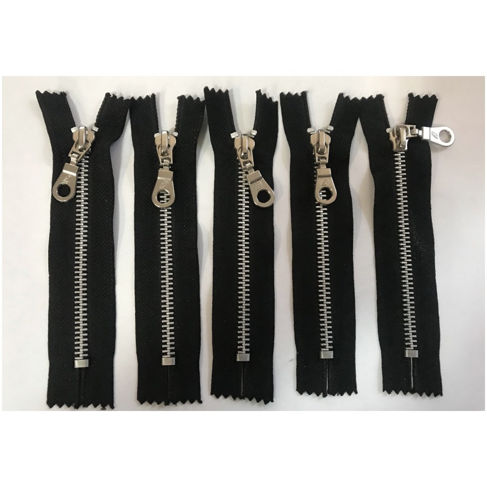 lot de 5 Fermeture éclair zip argenté mètal de couleur noir avec curseur poire en argent
