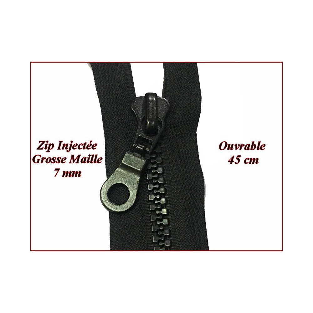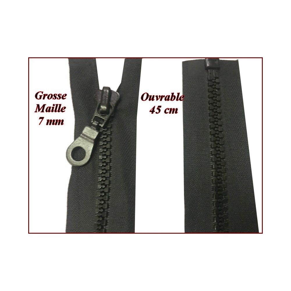 Fermeture à glissière en grosse maille plastique en 45 cm noir ouvrable, de bonne qualité, pour vetements, loisirs créatifs, customisation, zip pour pochette.