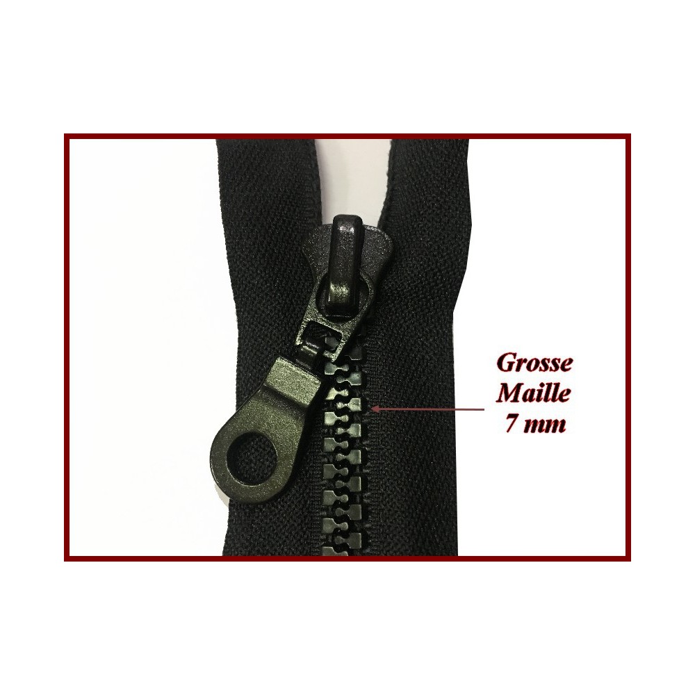 Fermeture éclair grosse maille plastique de 7 mm en taille 45 cm en ruban tissu noir à coudre .