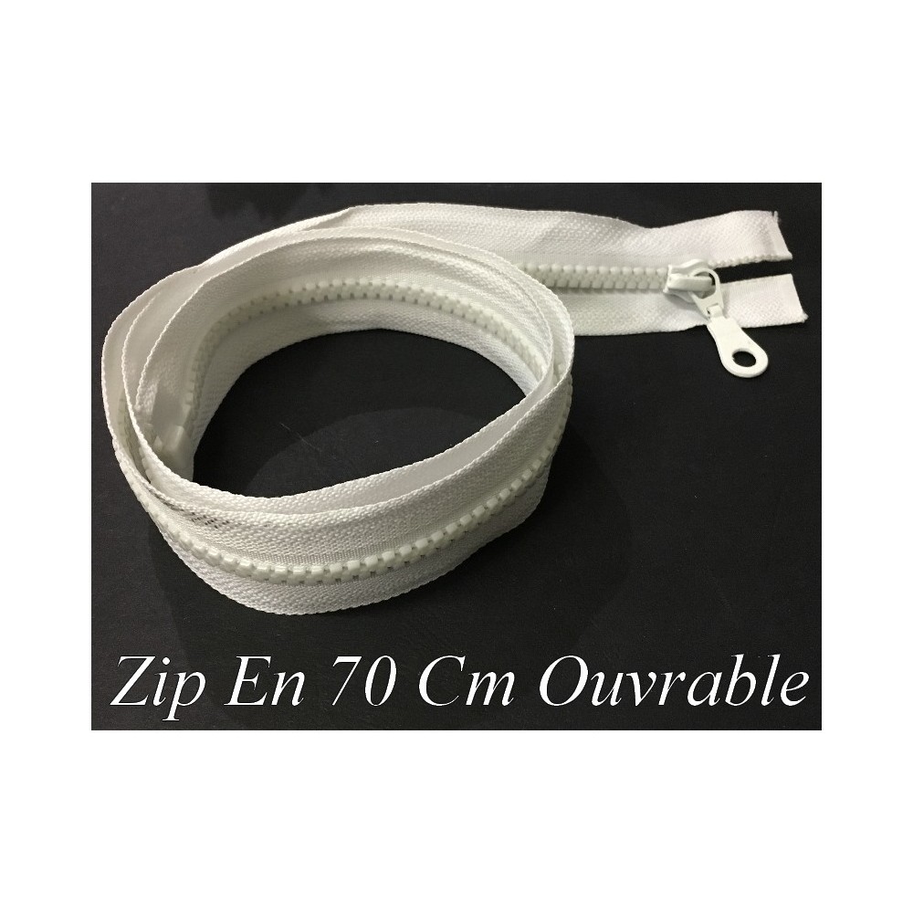 Zip fermeture en 40 cm en ruban tissu blanc coudre en maille injectée plastique.non-ouvrable