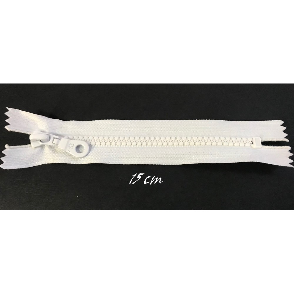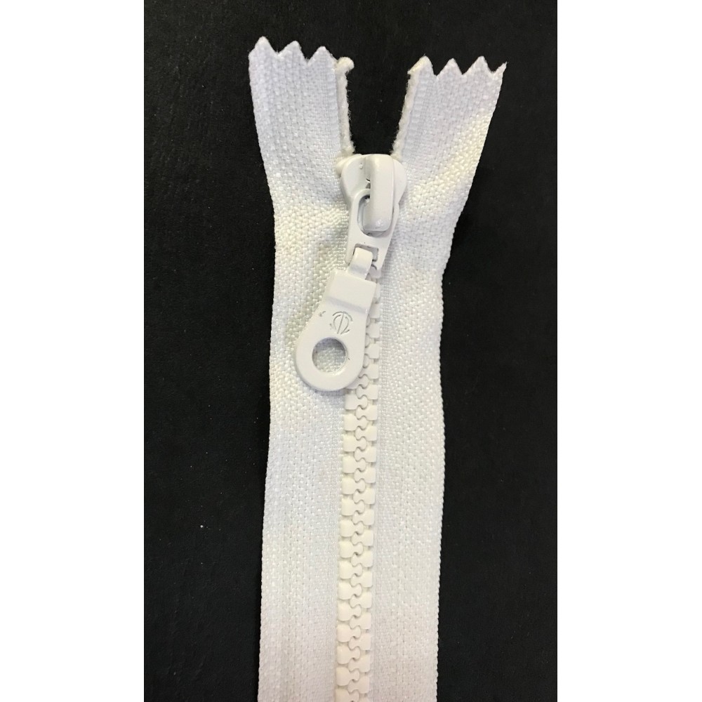 Zip fermeture à coudre en maille injectée plastique couleur blanche avec un curseur poire.