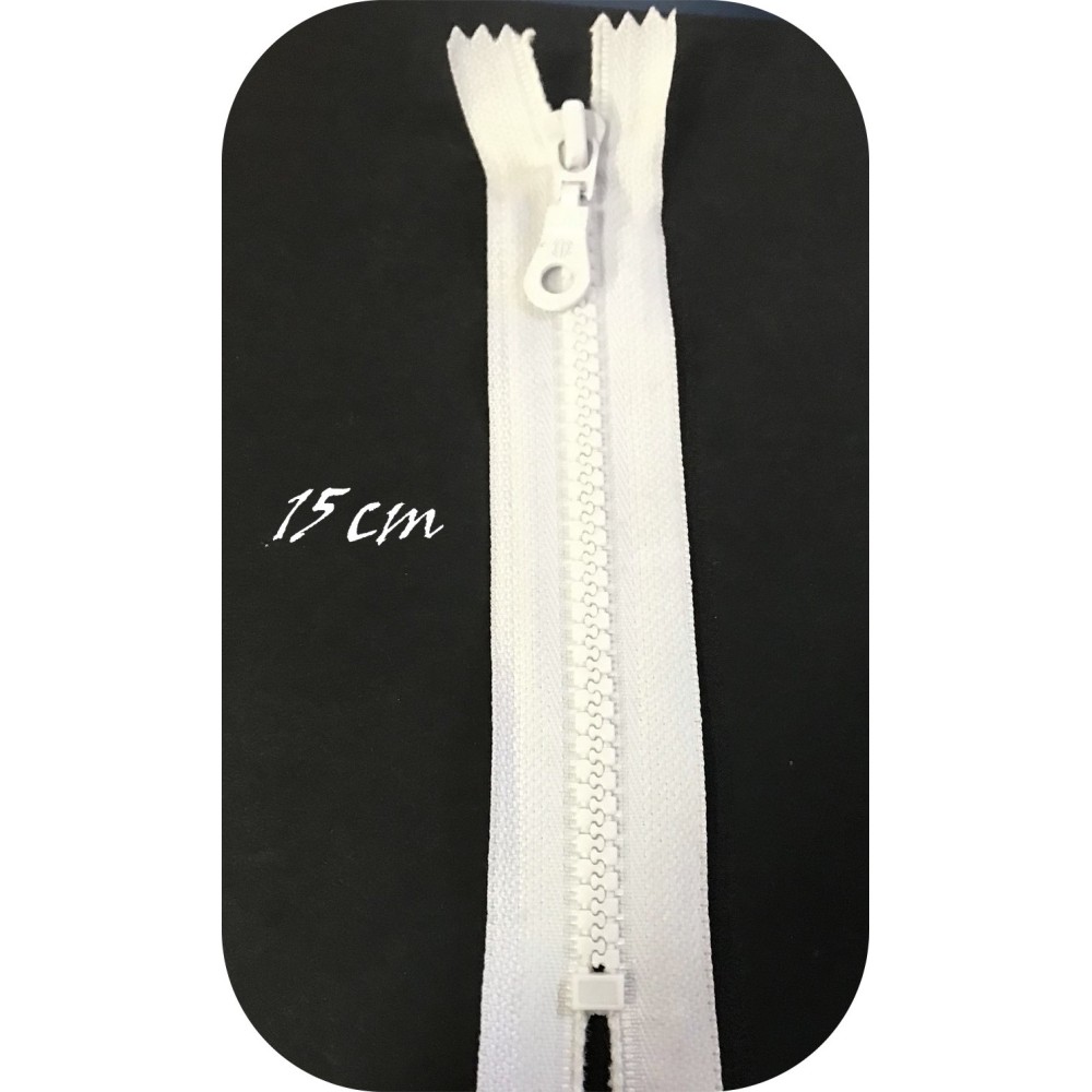 Zip fermeture à coudre en maille injectée plastique couleur blanche avec un curseur de forme poire.