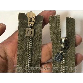zip Fermeture à glissières en métal argent fine Non- Ouvrable,en couleur kaki.