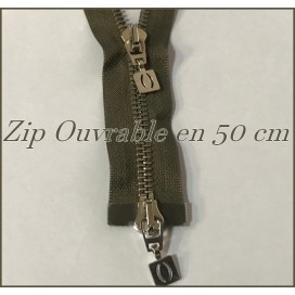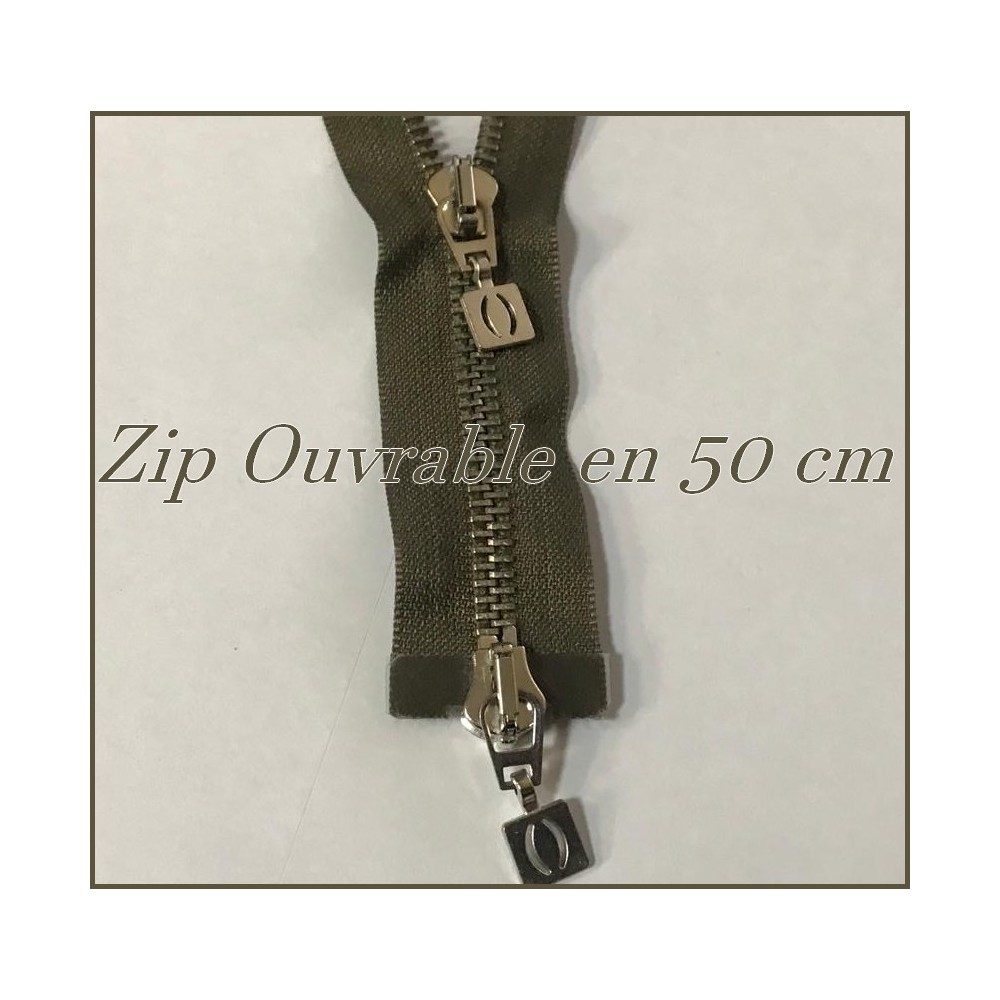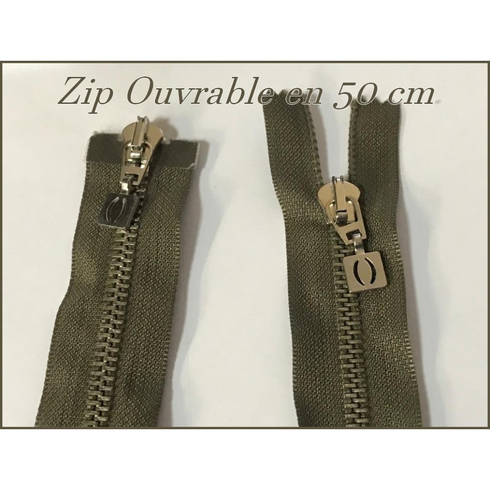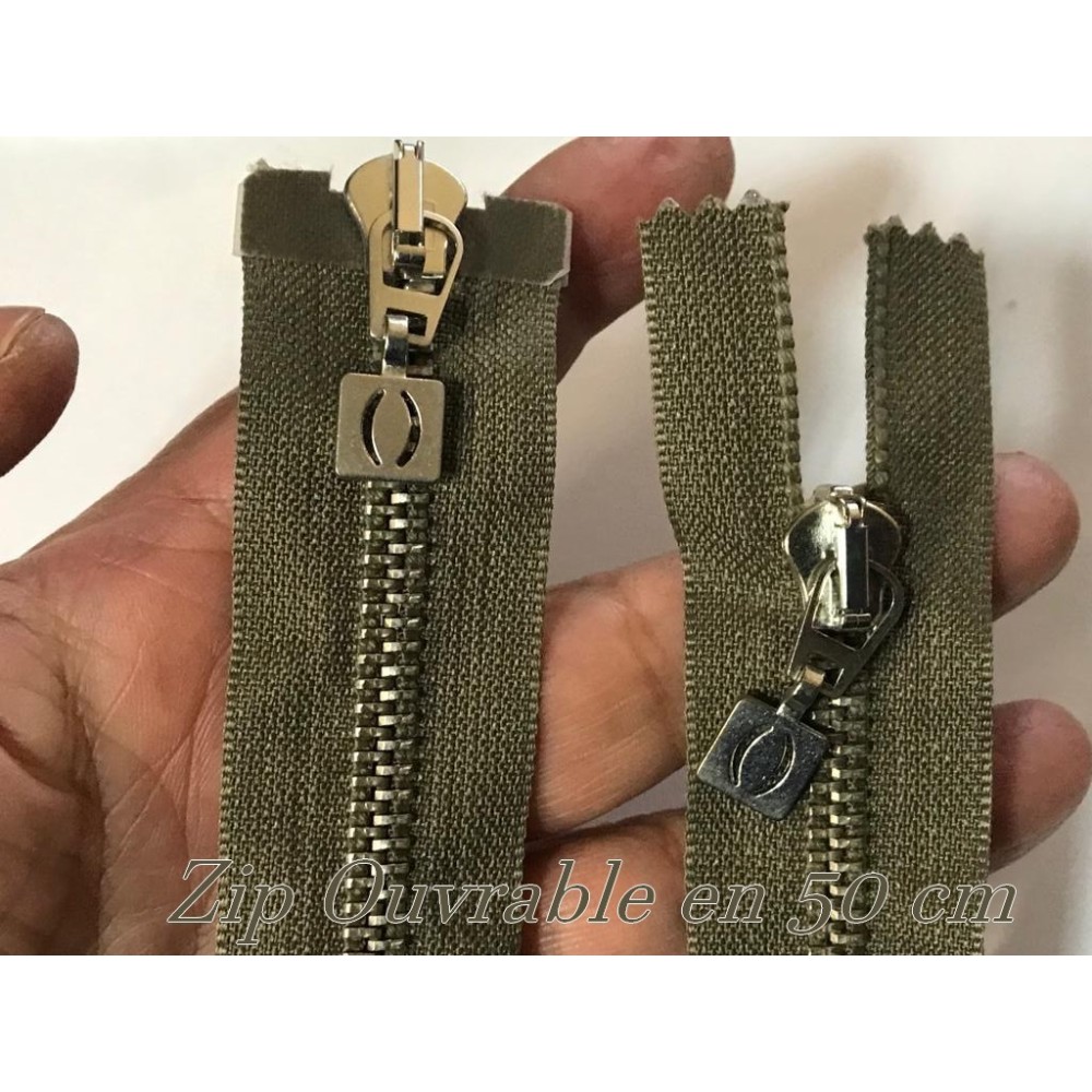 zip Fermeture à glissières en métal maille argenté kaki Ouvrable.