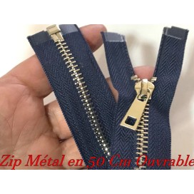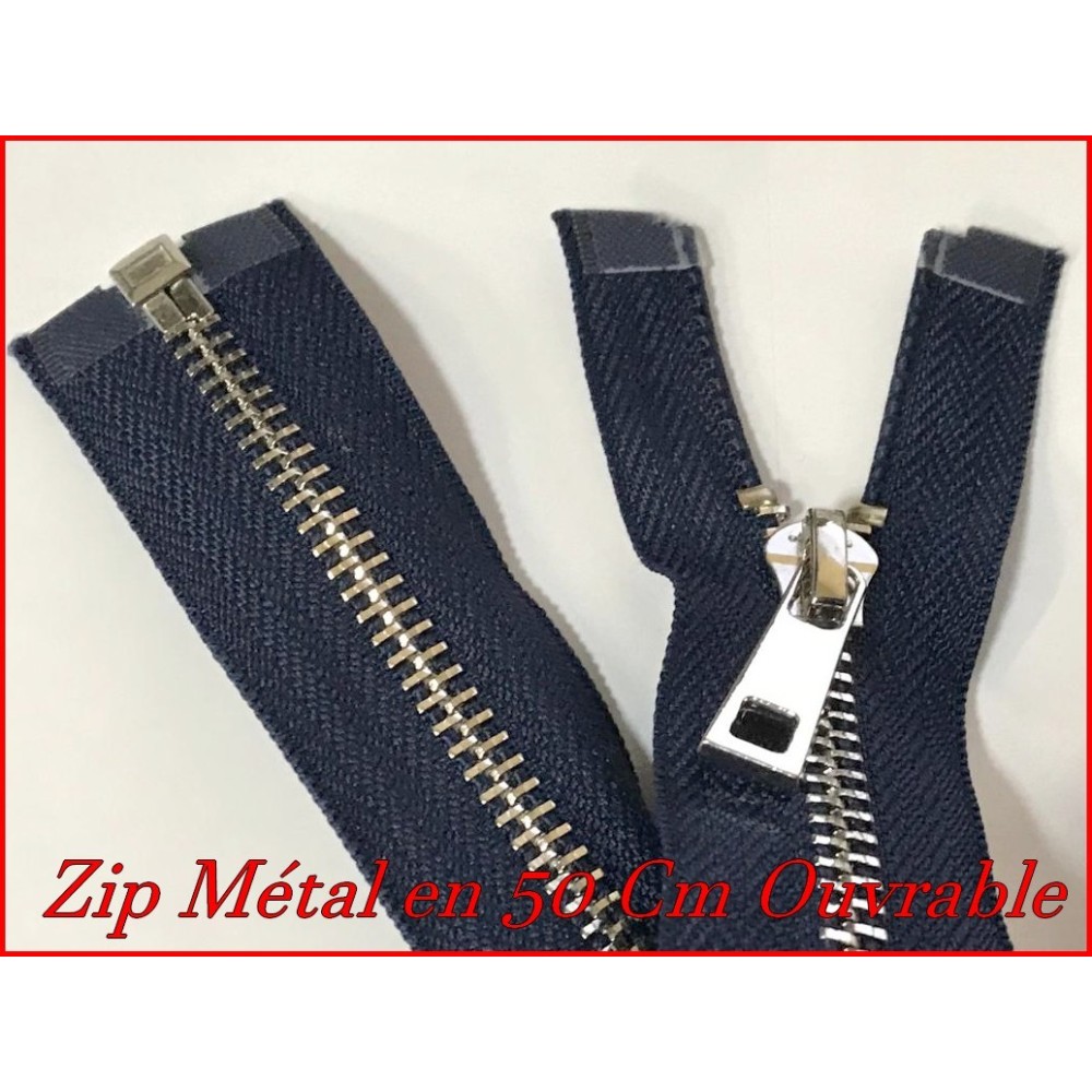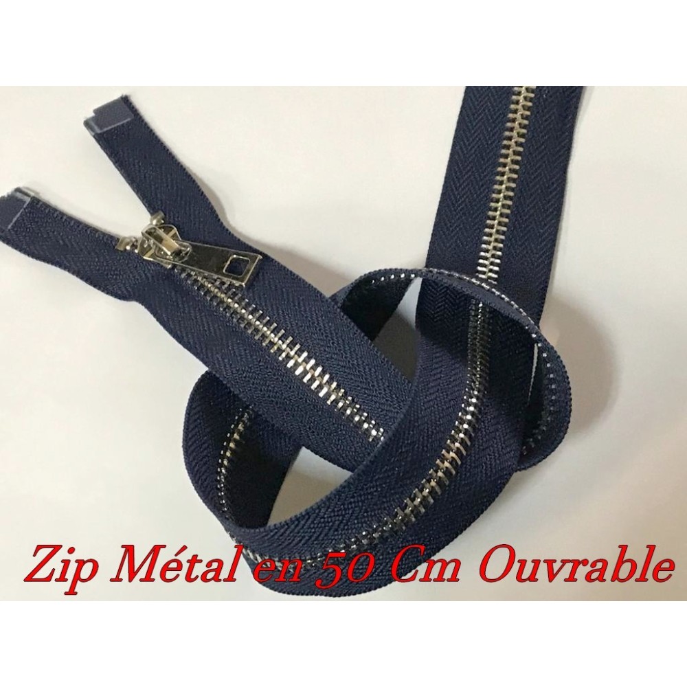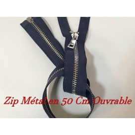 zip Fermeture à glissières en métal maille argent Ouvrable,en couleur marine.