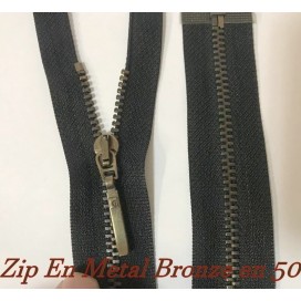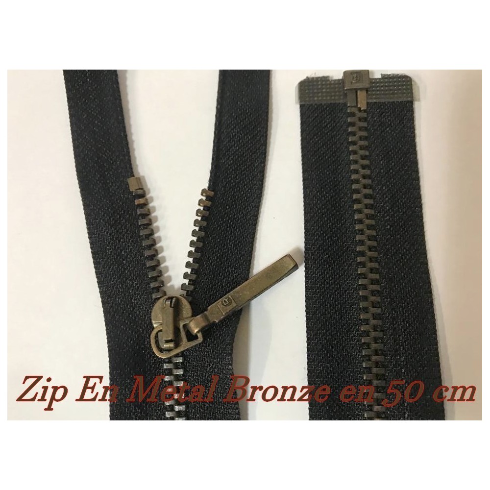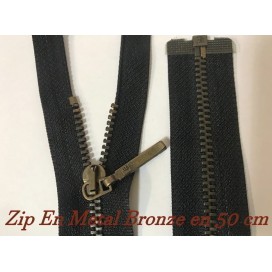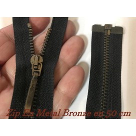 fermeture éclair métal bronze séparable en grande largeur à coudre pour habillement, confection,blousons cuir