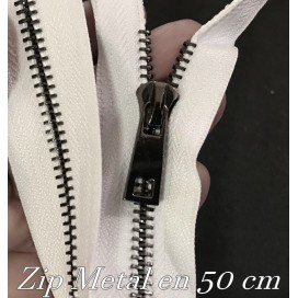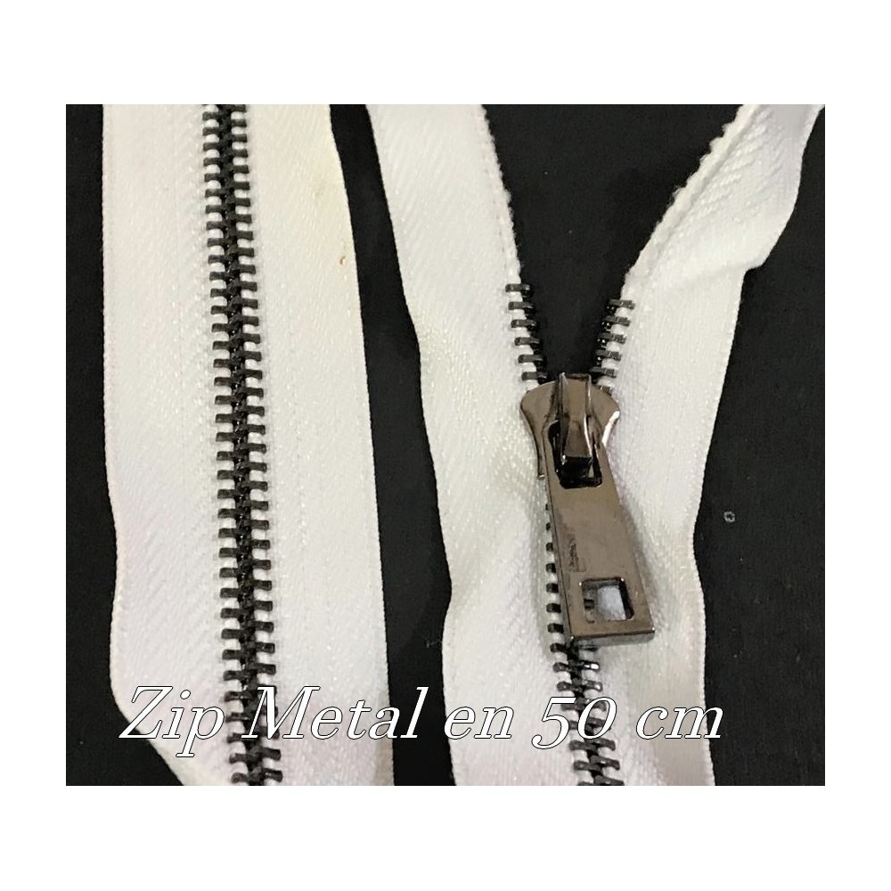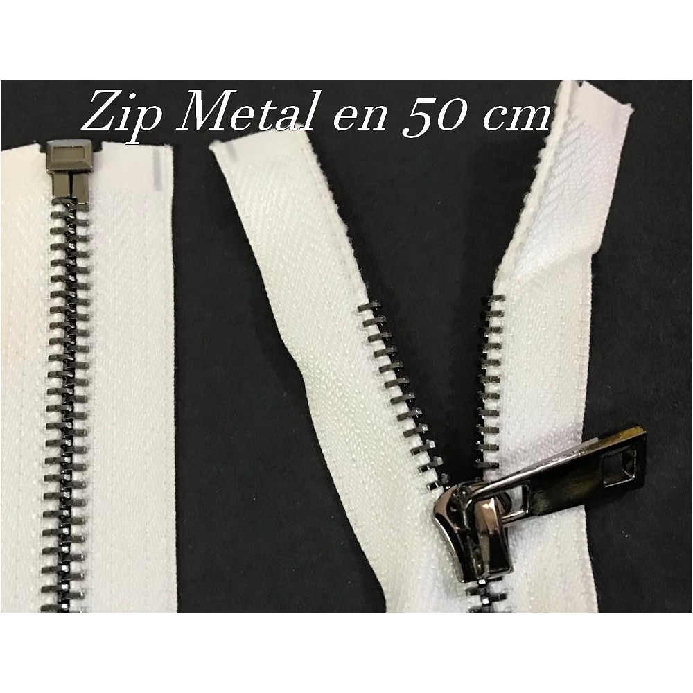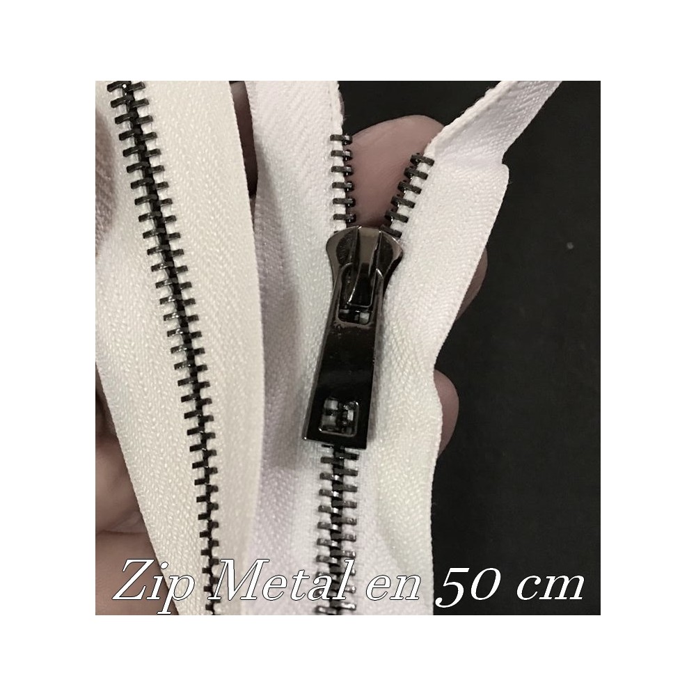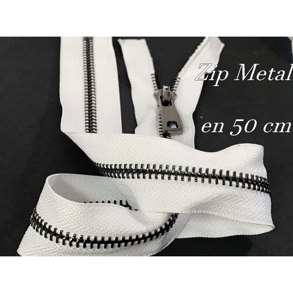 zip Fermeture à glissières en métal argent fine Ouvrable,en couleur blanc.