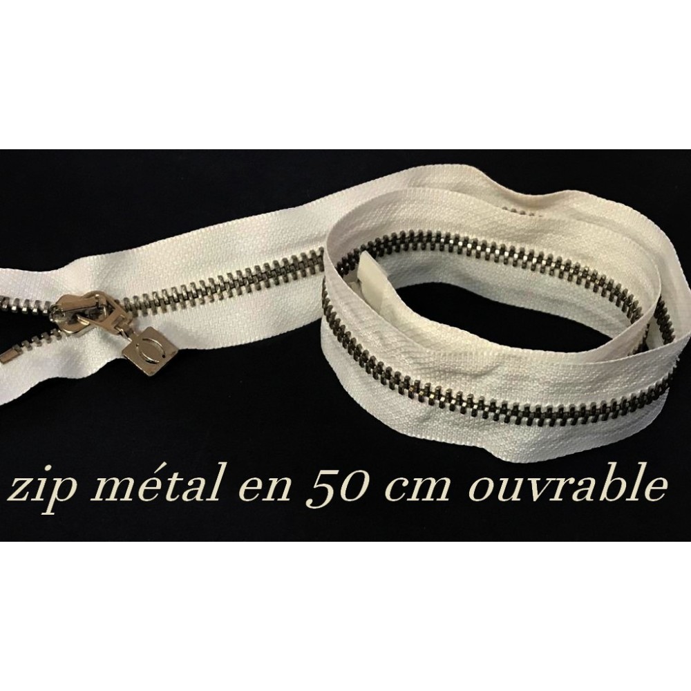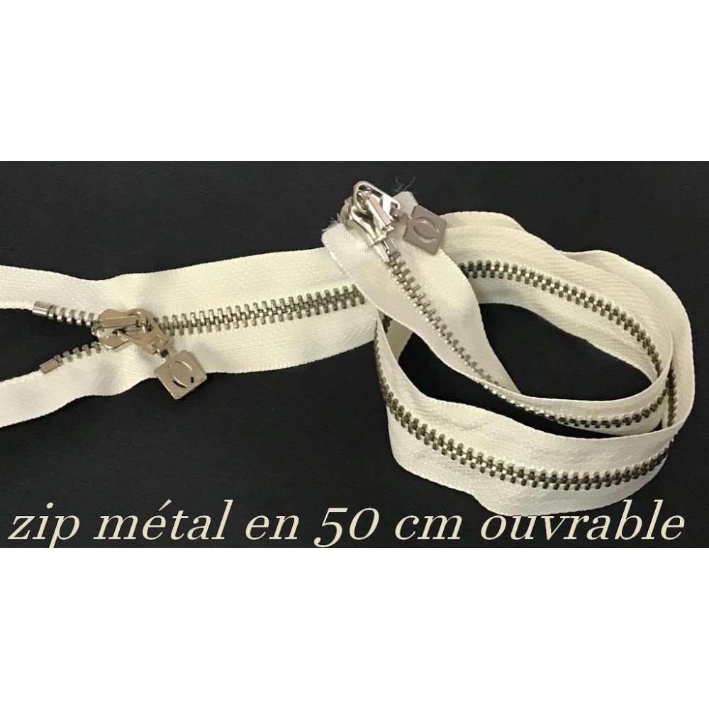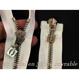zip Fermeture à glissières en métal argent fine Ouvrable,en couleur blanc.
