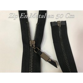 zip Fermeture à glissières en métal en grosse maille noir Ouvrable,en double curseur couleur noir.