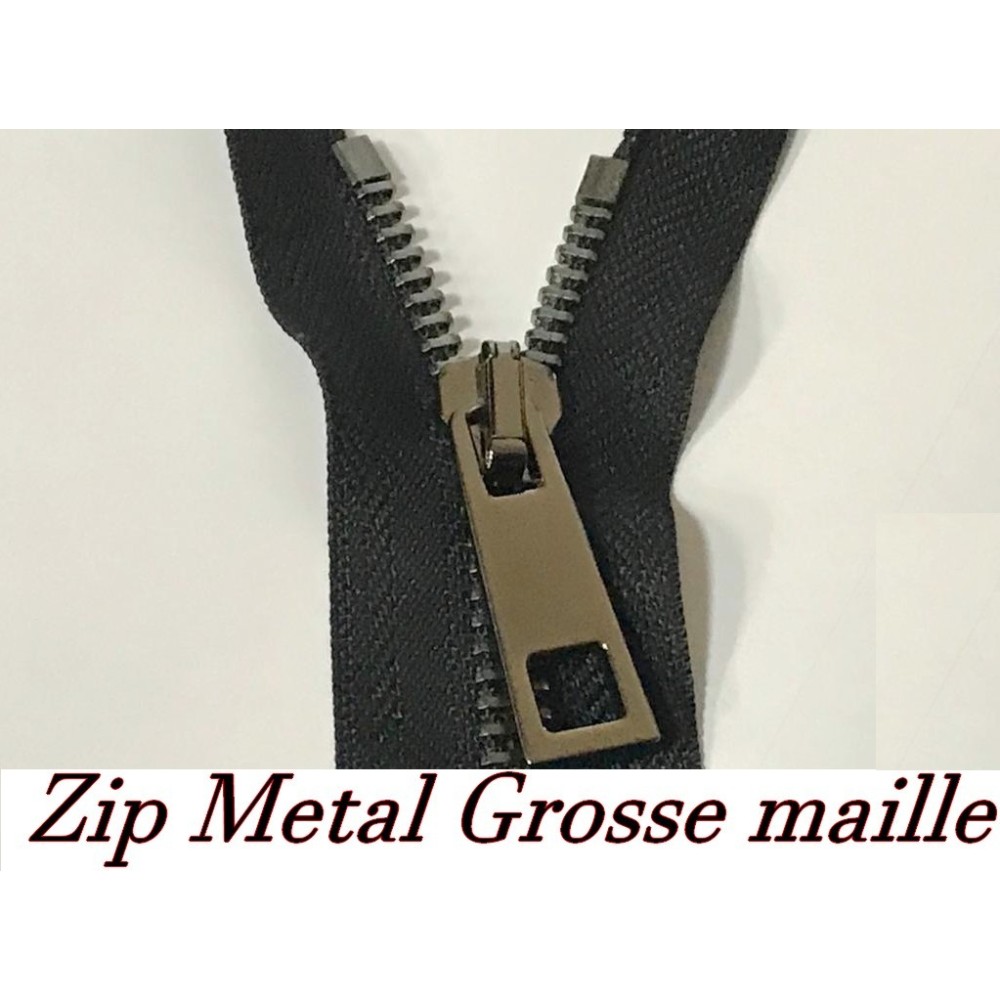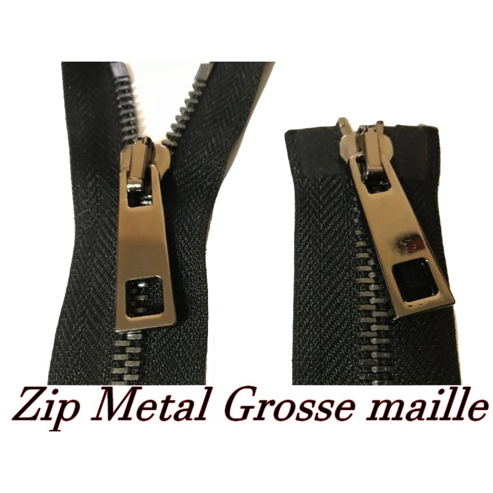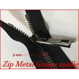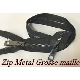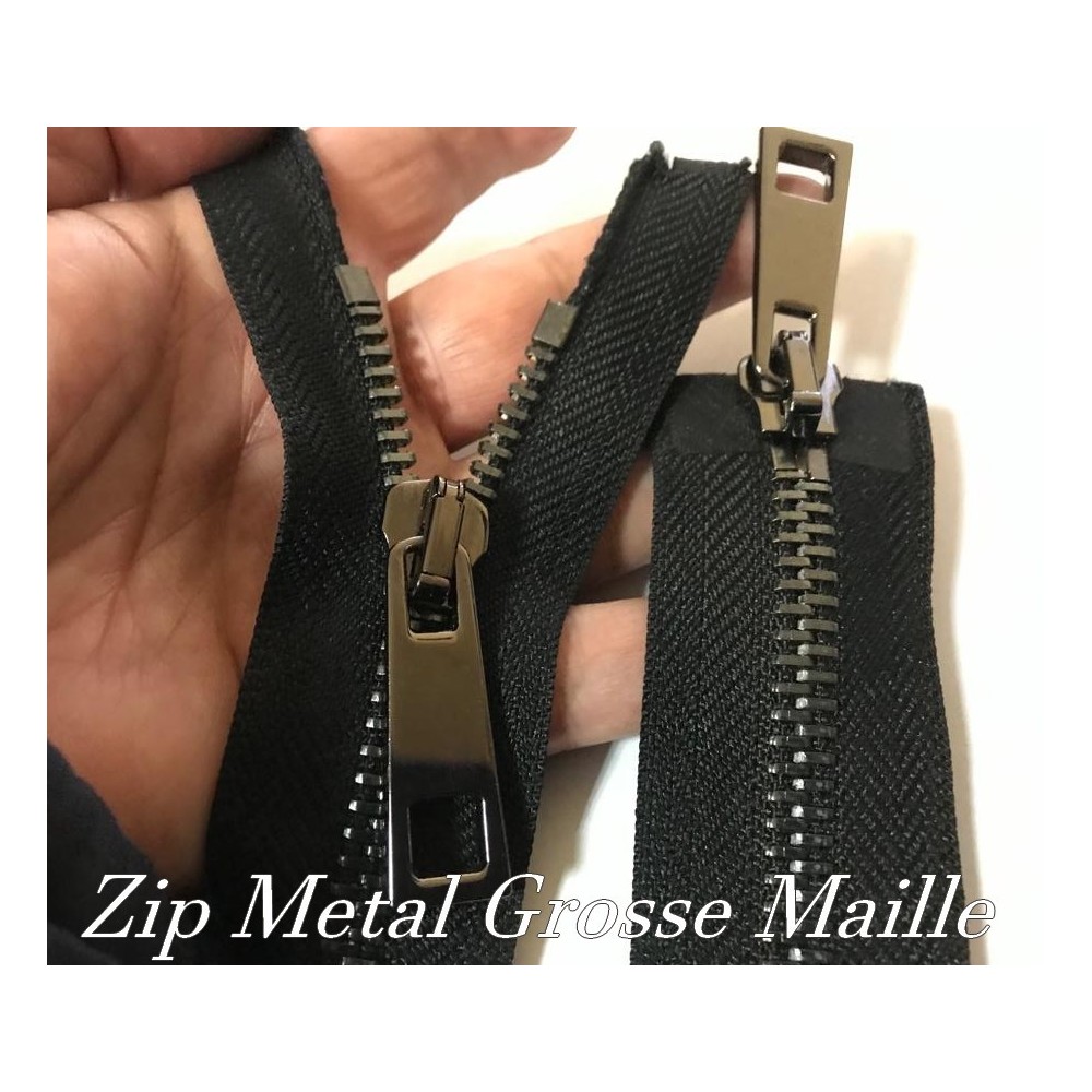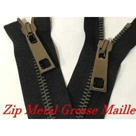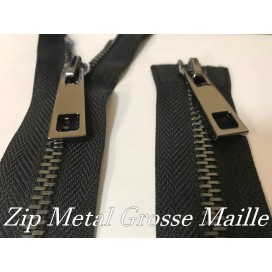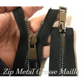 zip Fermeture à glissières en métal en grosse maille noir Ouvrable,en double curseur couleur noir.