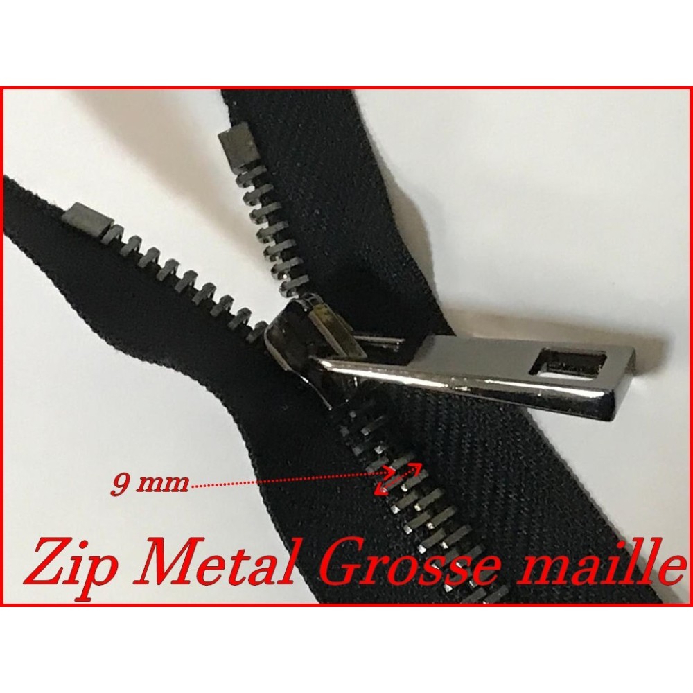 fermeture éclair métal noir séparable en grande largeur à coudre pour habillement, confection,blousons cuir