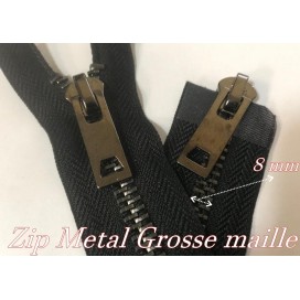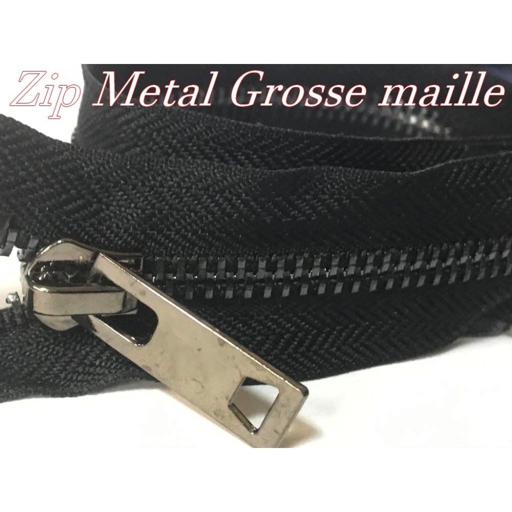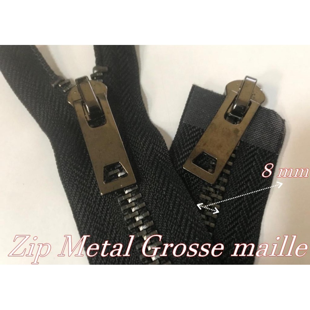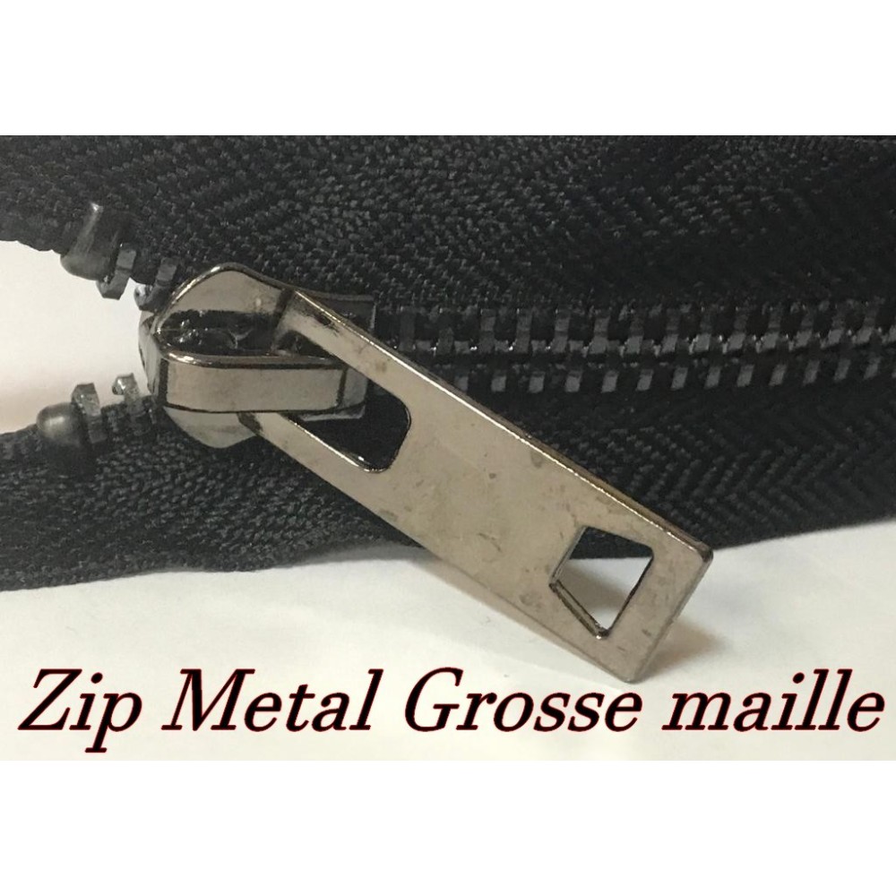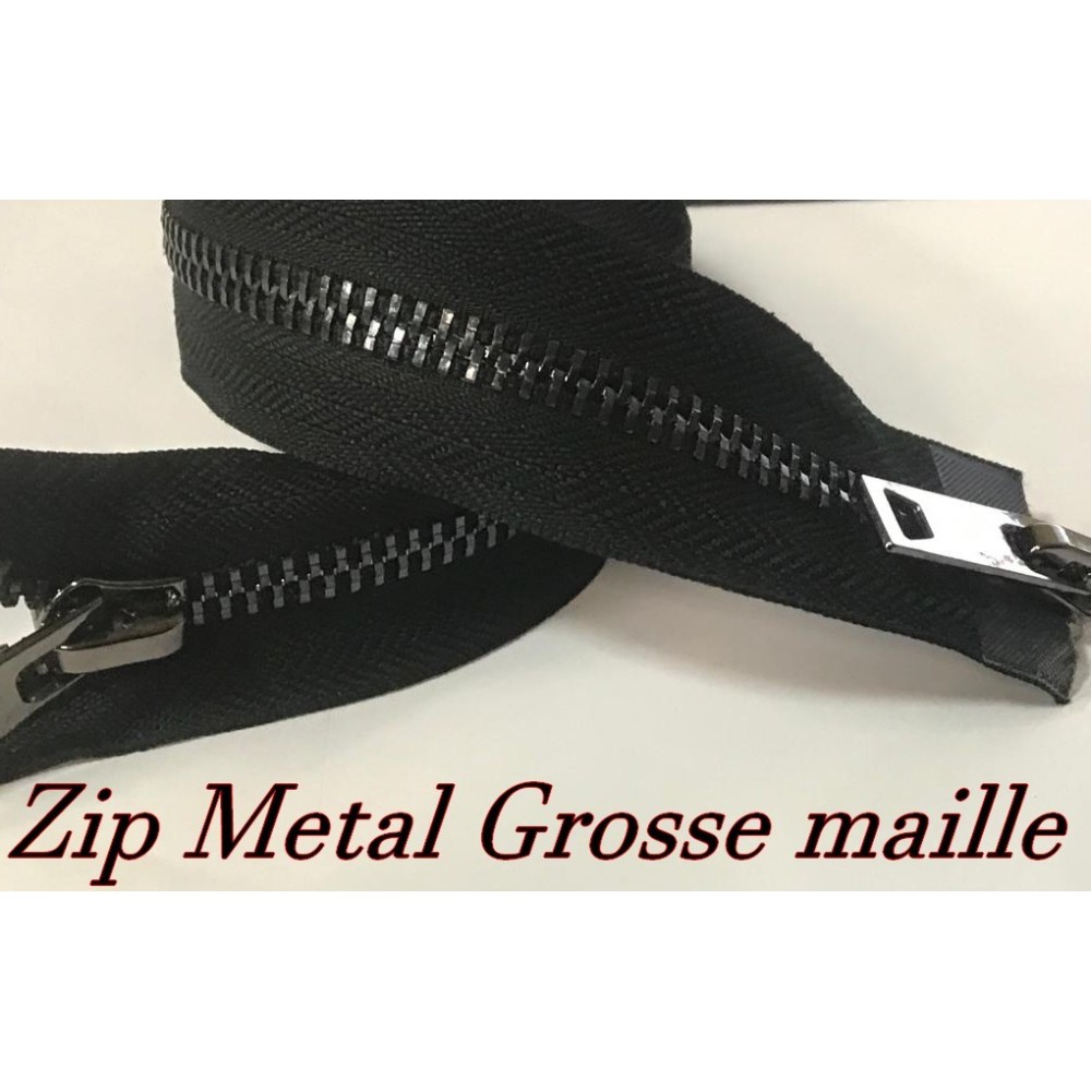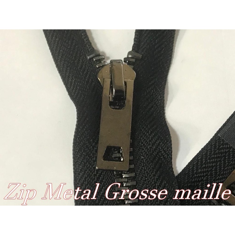 zip Fermeture à glissières en métal en grosse maille noir Ouvrable,en double curseur couleur noir.
